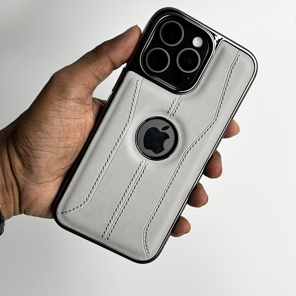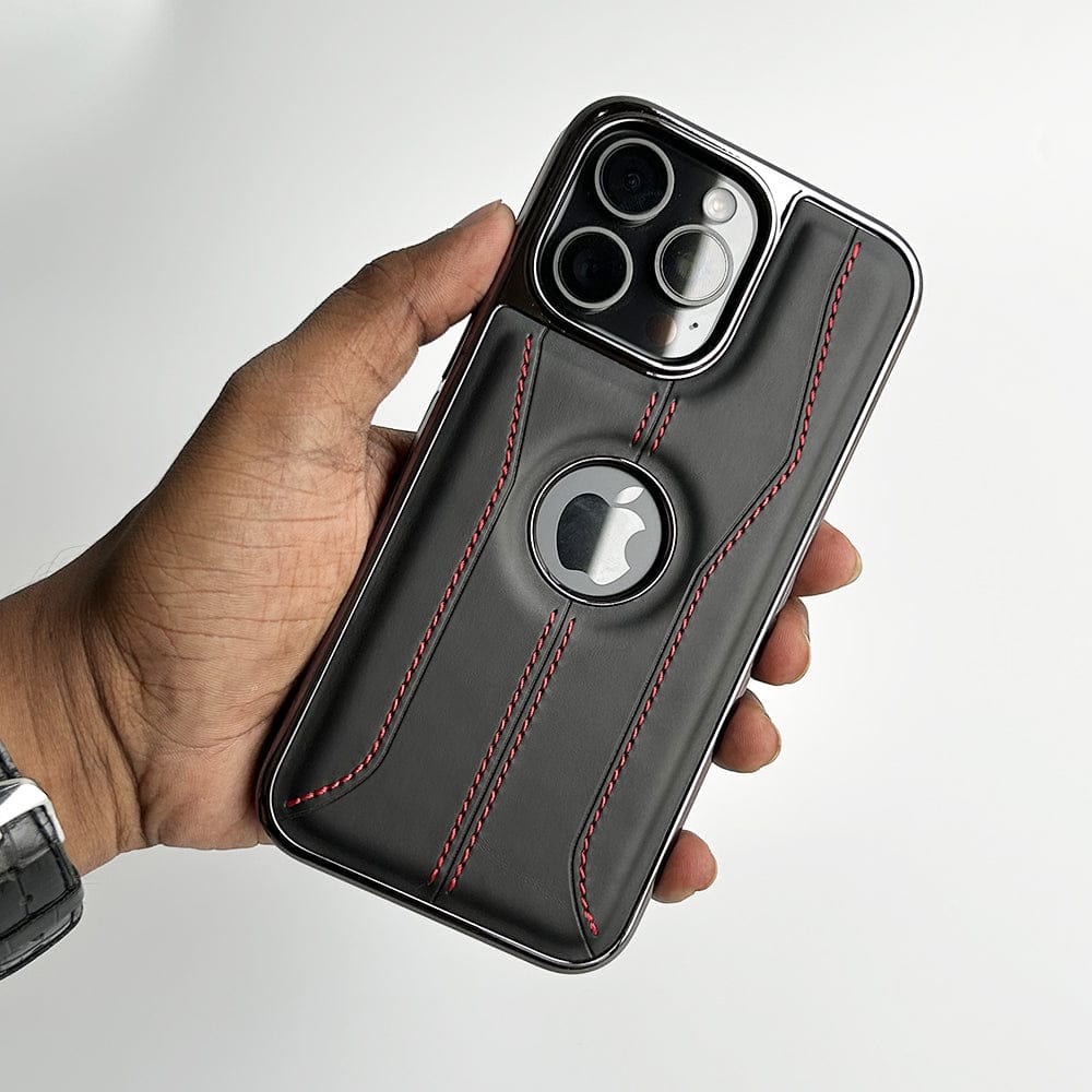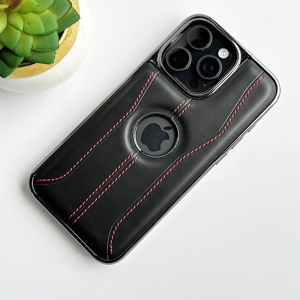 iPhone 16 Series Stitch PU Leather Side Chrome Case Cover