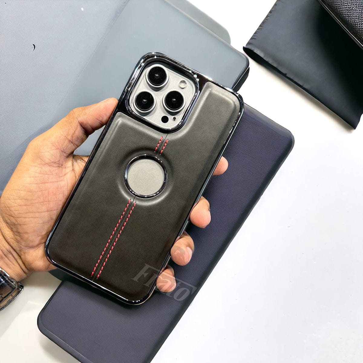 iPhone 15 Series Logo Cut Chrome Plated PU leather Luxry Case Cover