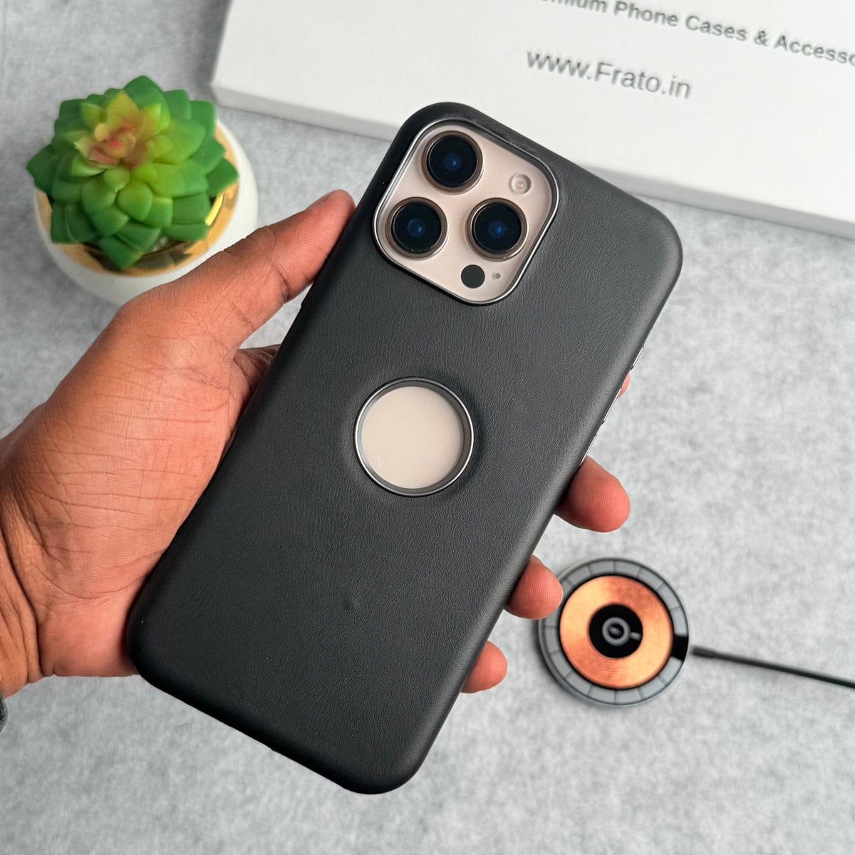 FRATO iPhone 15 Series iPhone 15 Pro Max / Black iPhone 15 Series Textured PU Leather Logo Cut MagSafe Case Cover