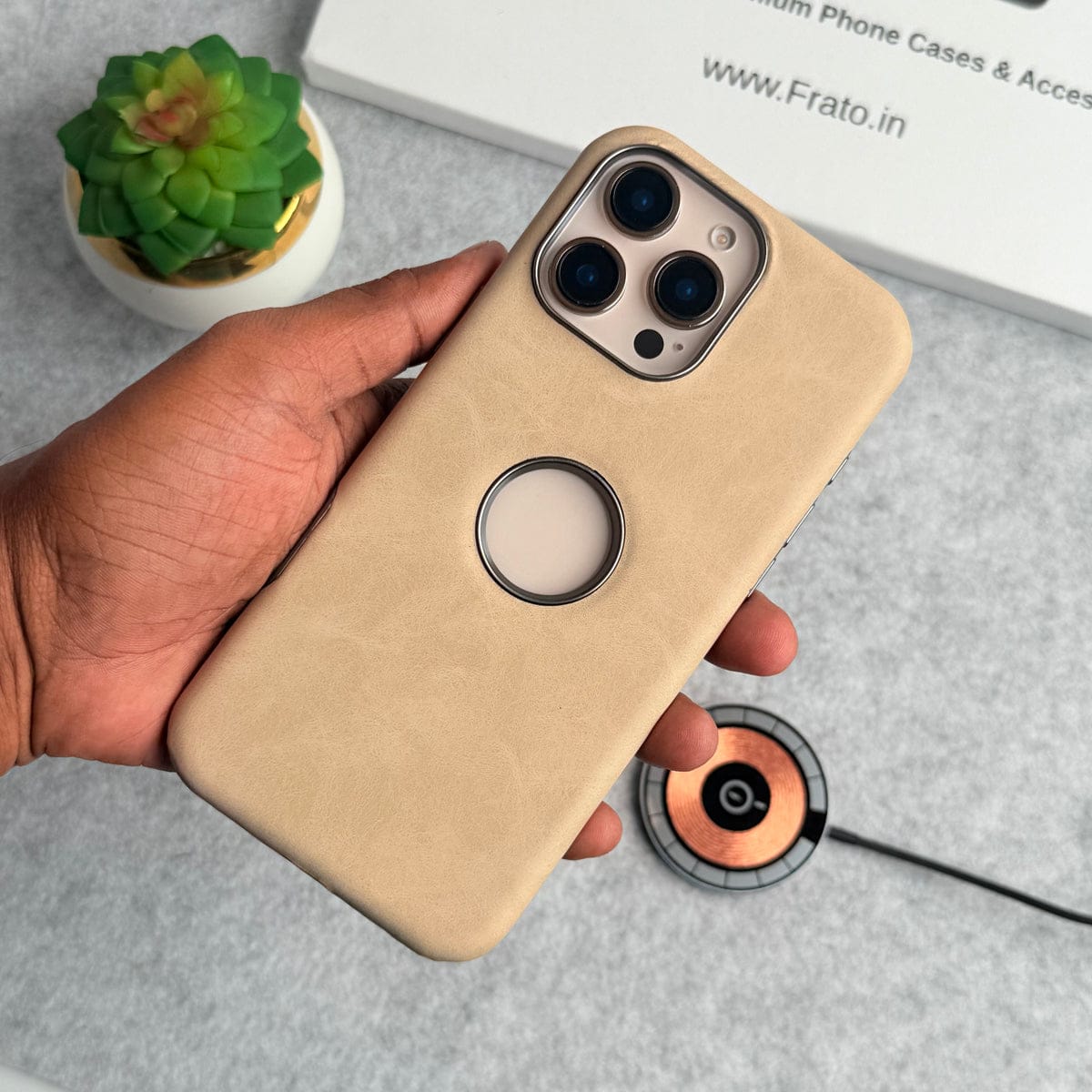 FRATO iPhone 15 Series iPhone 15 Series Textured PU Leather Logo Cut MagSafe Case Cover