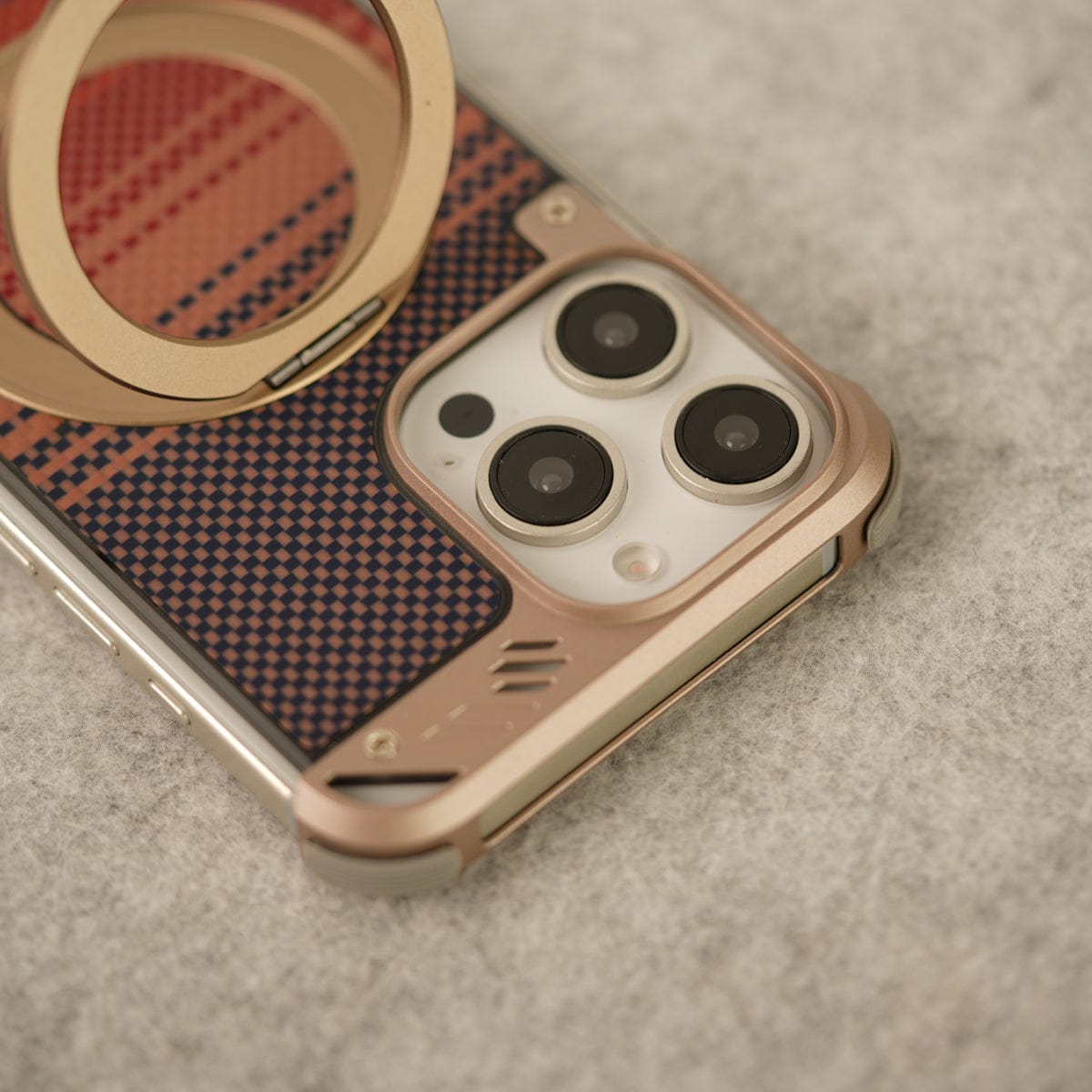 iPhone 16 Series Aramid Fiber Metal Case With Rotating Stand Desert Titanium