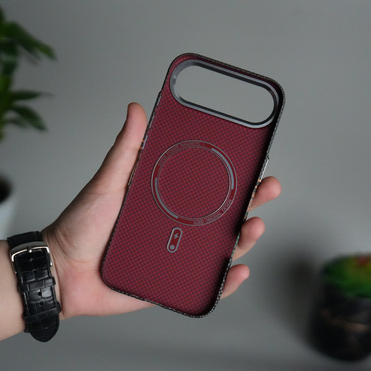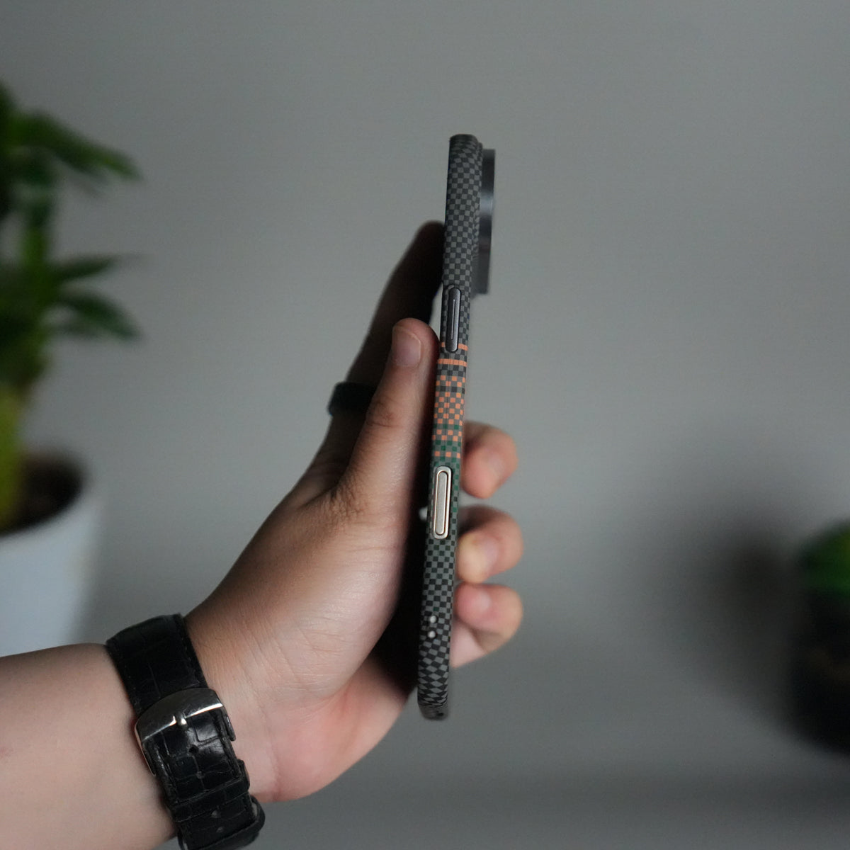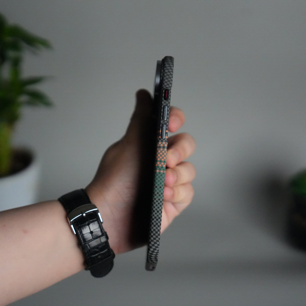 iPhone 17 Air Carbon Fiber Texture Design Hard Pc MagSafe Case Cover OrangeGreen