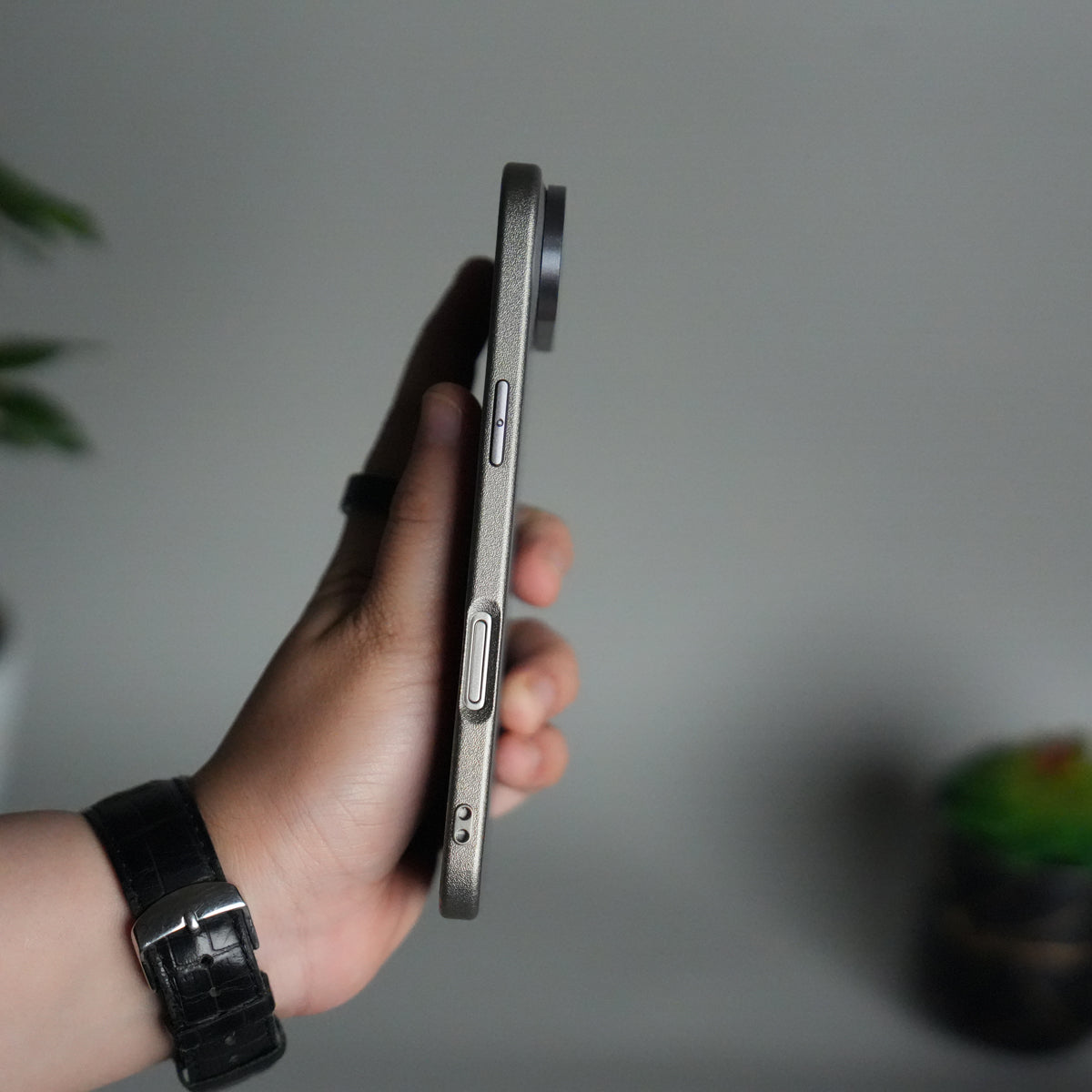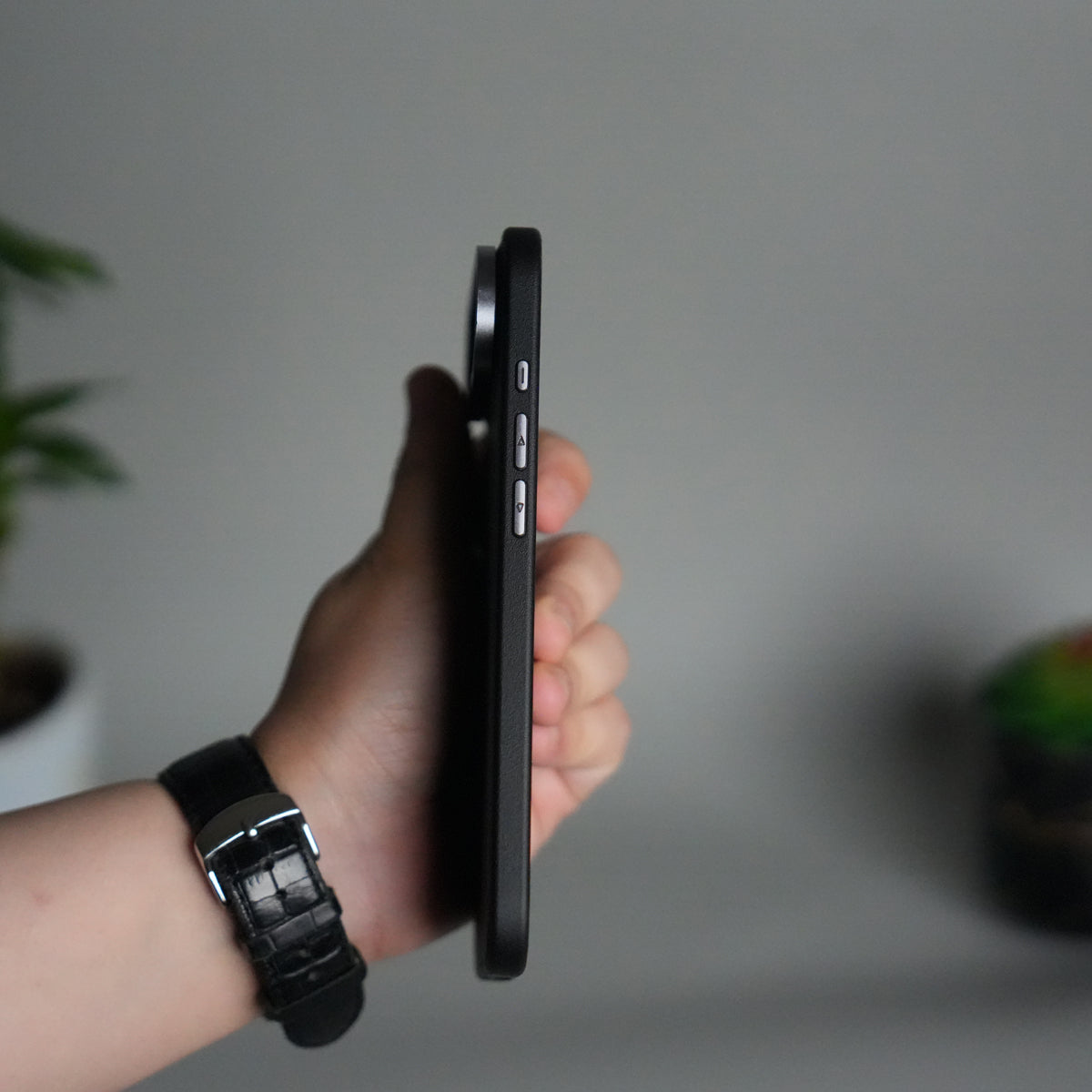 Enhance your iPhone 17 Air with this luxury matte leather case, blending elegance and durability. Crafted with a premium PU leather finish, it offers a soft grip, anti-fingerprint protection, and a sleek slim-fit design. The chrome-edged camera frame adds a modern metallic accent while providing lens protection. Perfect for users who value style, class, and comfort in one case.