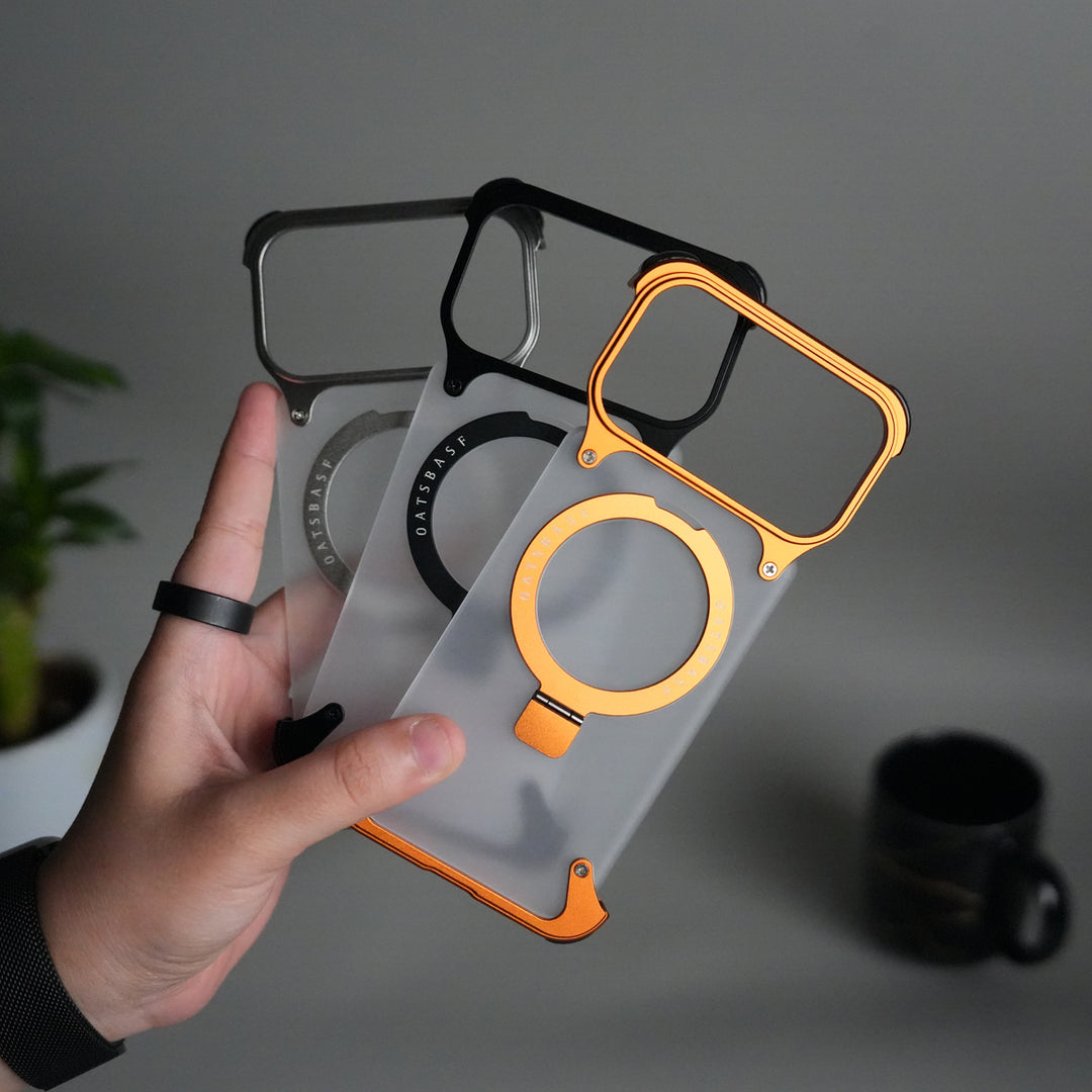 iPhone 17 Pro Max Frosted Frameless Metal Kickstand Case