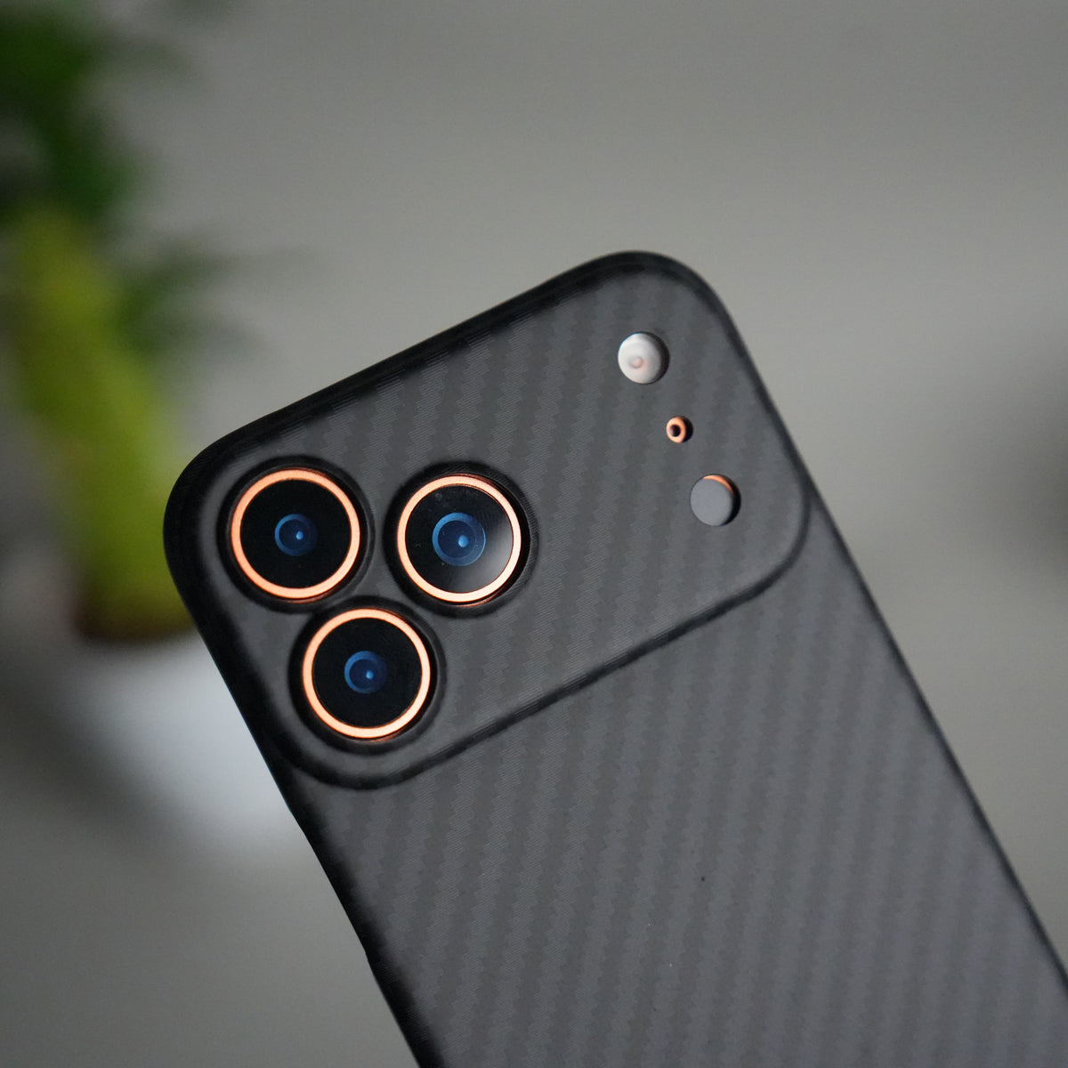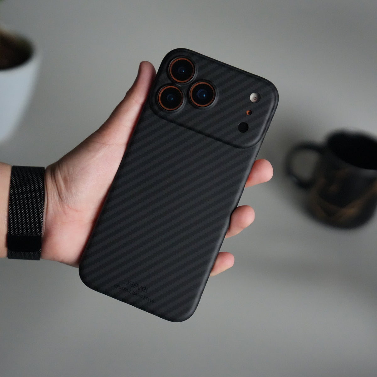 Experience sleek protection with this ultra-thin carbon fiber design case for the iPhone 17 Pro Max. Crafted with a premium textured carbon fiber finish, it offers a stylish, modern look while keeping your phone feather-light and pocket-friendly. The integrated Magnetic Charging Ring ensures seamless MagSafe and wireless charging compatibility without removing the cover. Perfect for those who prefer a minimalist yet protective case.