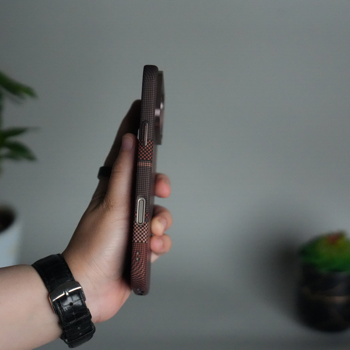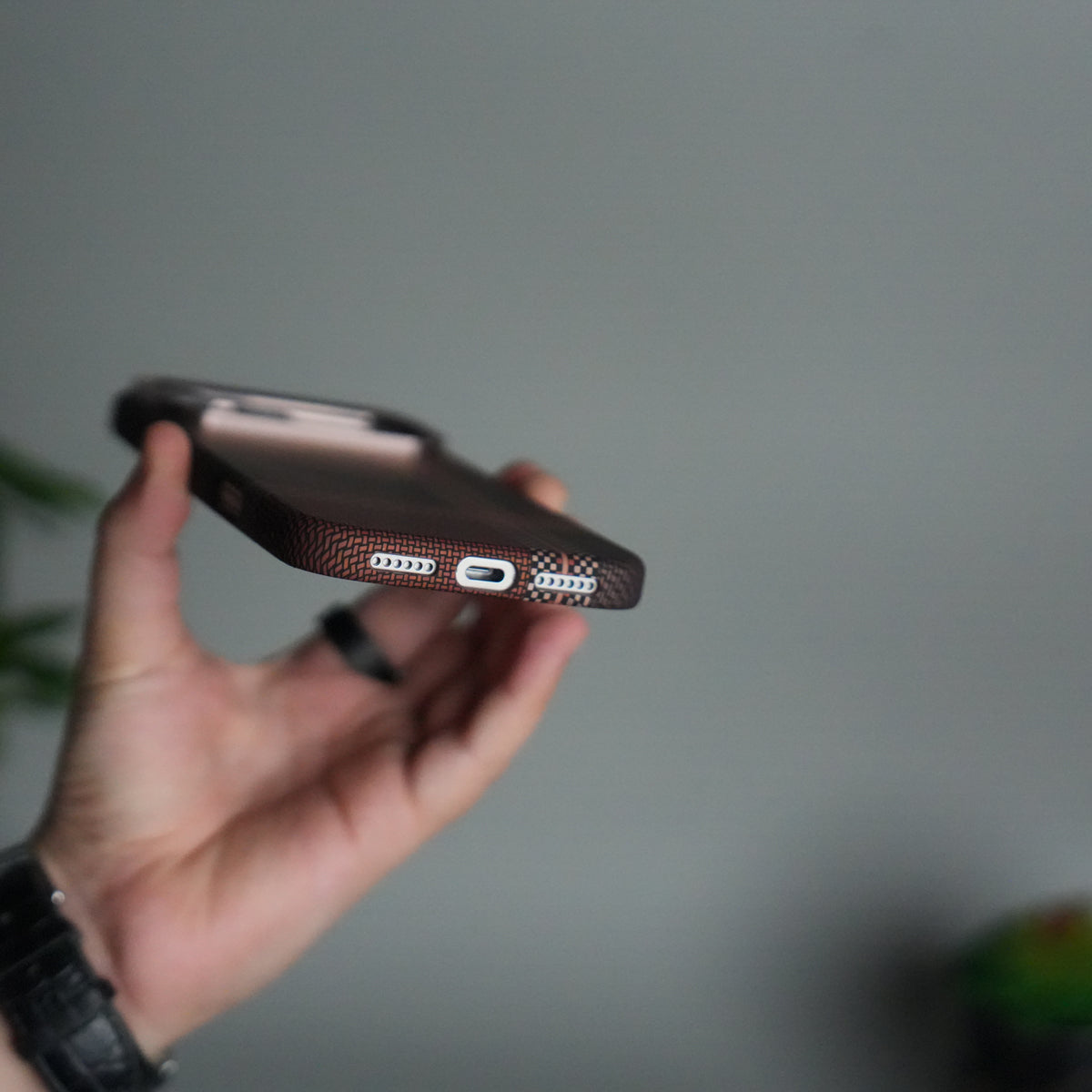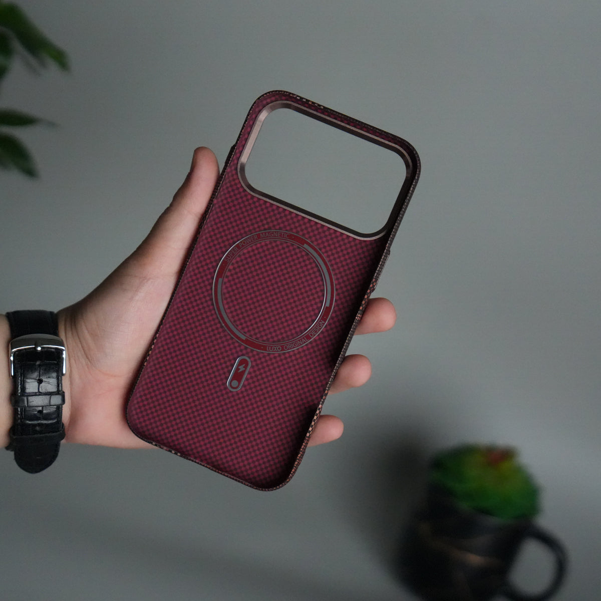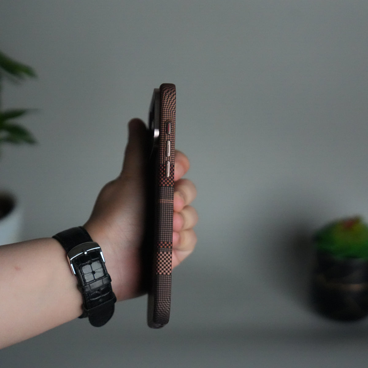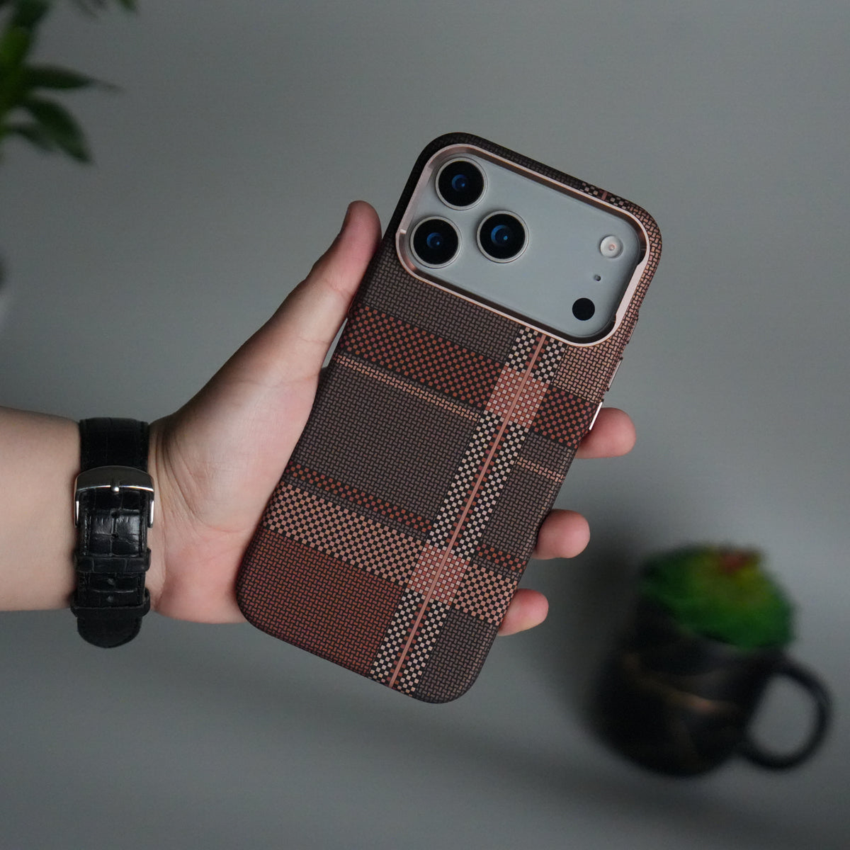 iPhone 17 Pro Carbon Fiber Texture Design Hard Pc MagSafe Case Cover BrownWhite