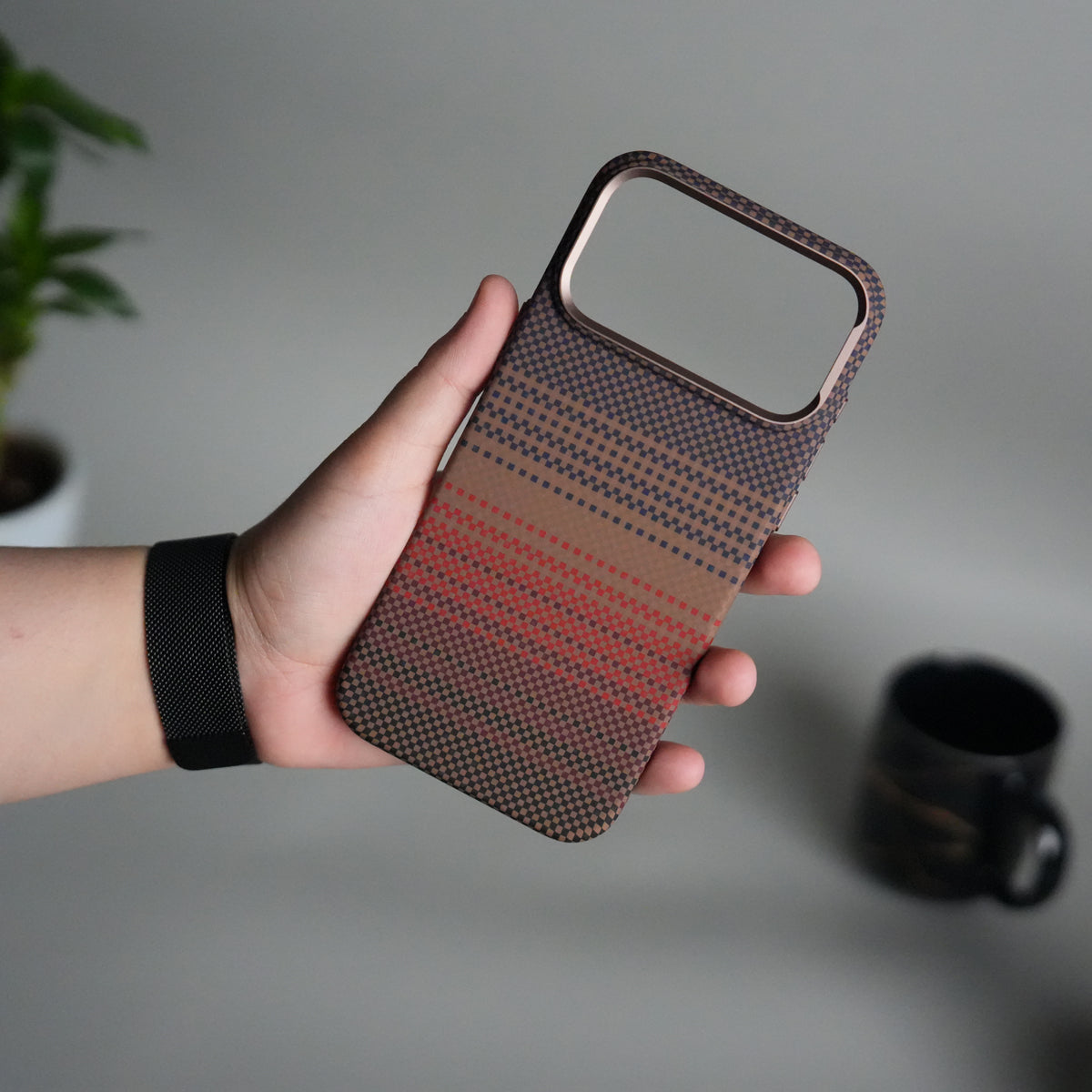 iPhone 17 Pro Carbon Fiber Texture Design Hard Pc MagSafe Case Cover Red Orange Line