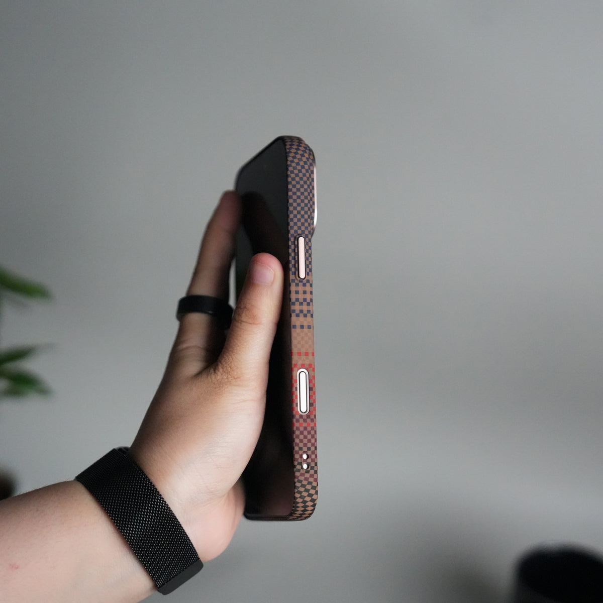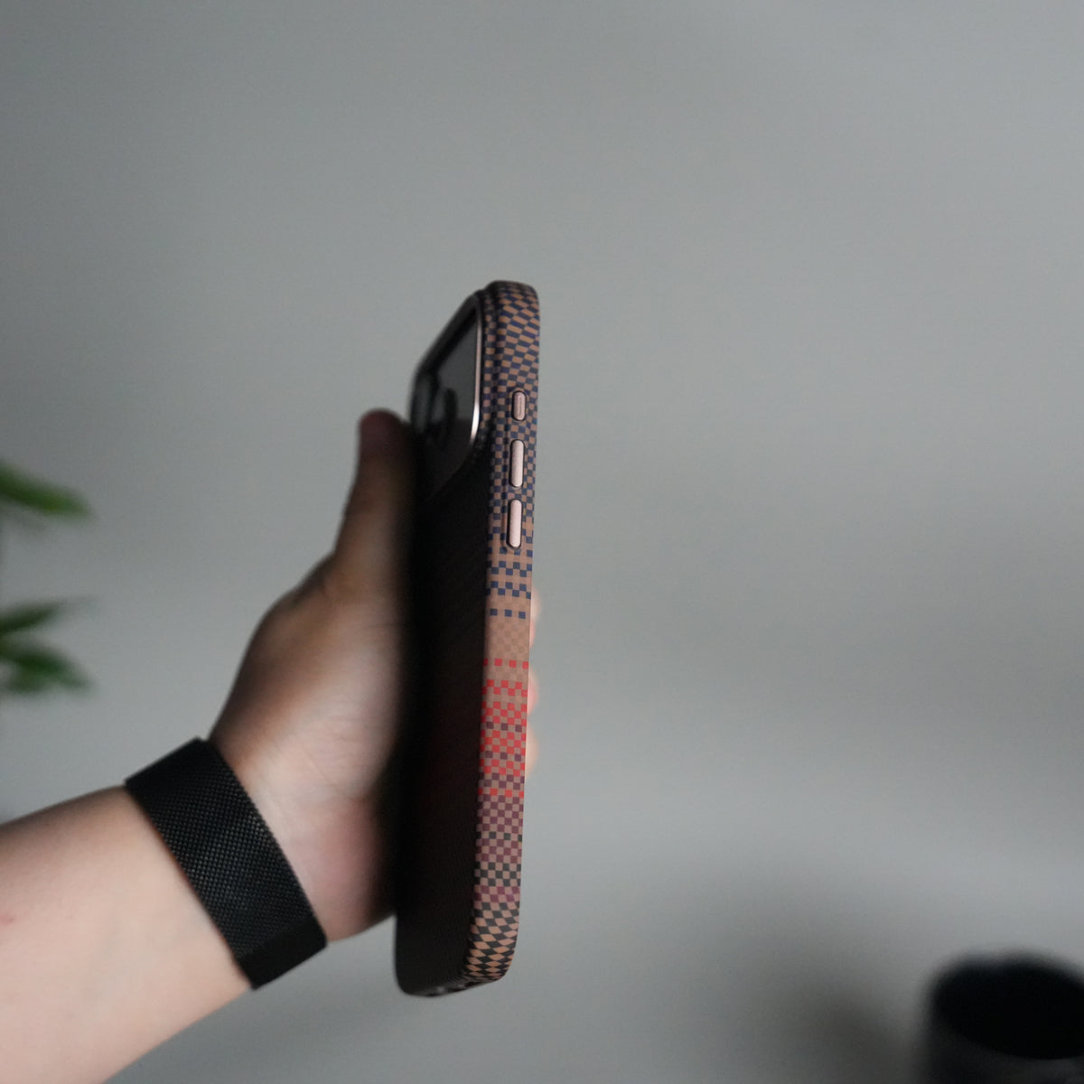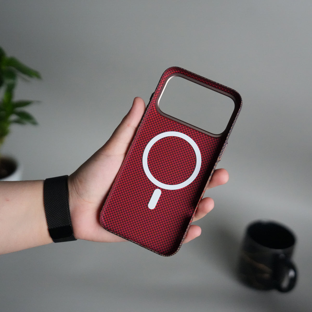 iPhone 17 Pro Carbon Fiber Texture Design Hard Pc MagSafe Case Cover RedOrange