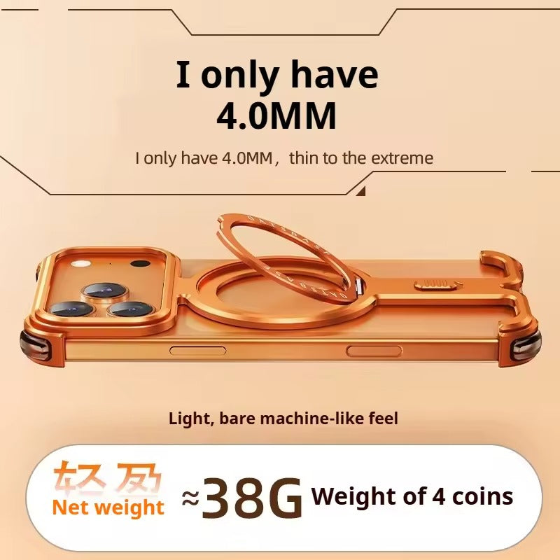 Experience unmatched durability and style with this Metal Frameless Bumper Case for iPhone 17 Pro. Crafted from aircraft-grade aluminum alloy, it provides strong edge protection without adding bulk. The 360° rotating ring stand allows for convenient hands-free viewing and magnetic mount support, while the frameless open design ensures easy folding and access to all ports. Designed for those who demand modern aesthetics and rugged performance in one.
