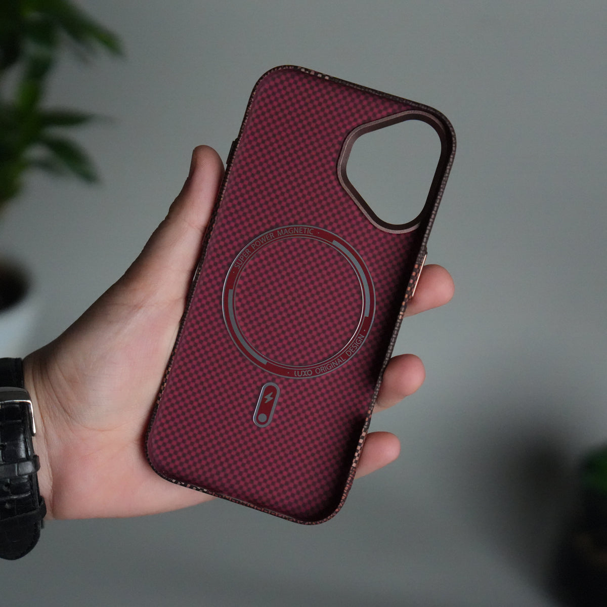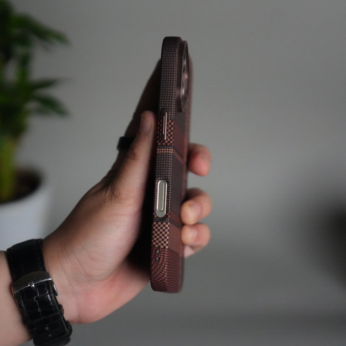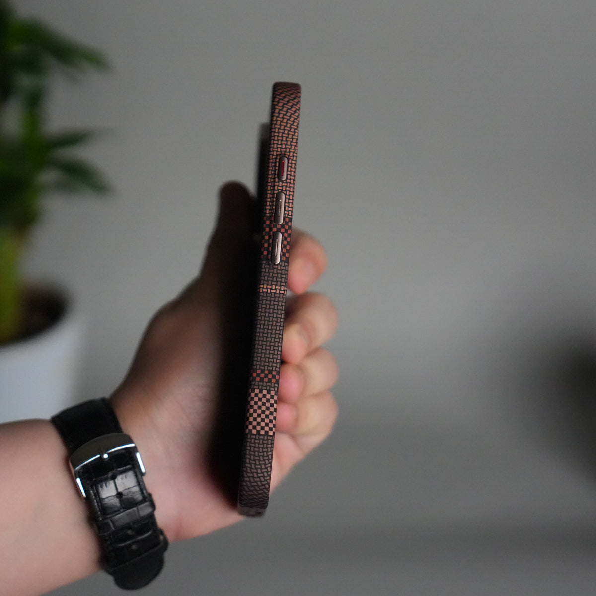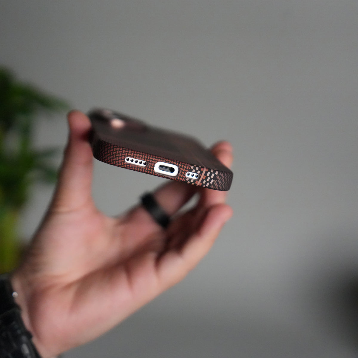 iPhone 17 Carbon Fiber Texture Design Hard Pc MagSafe Case Cover BrownWhite