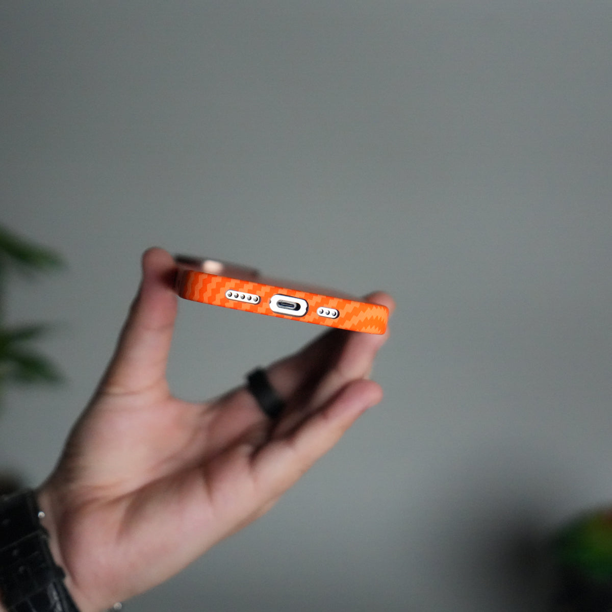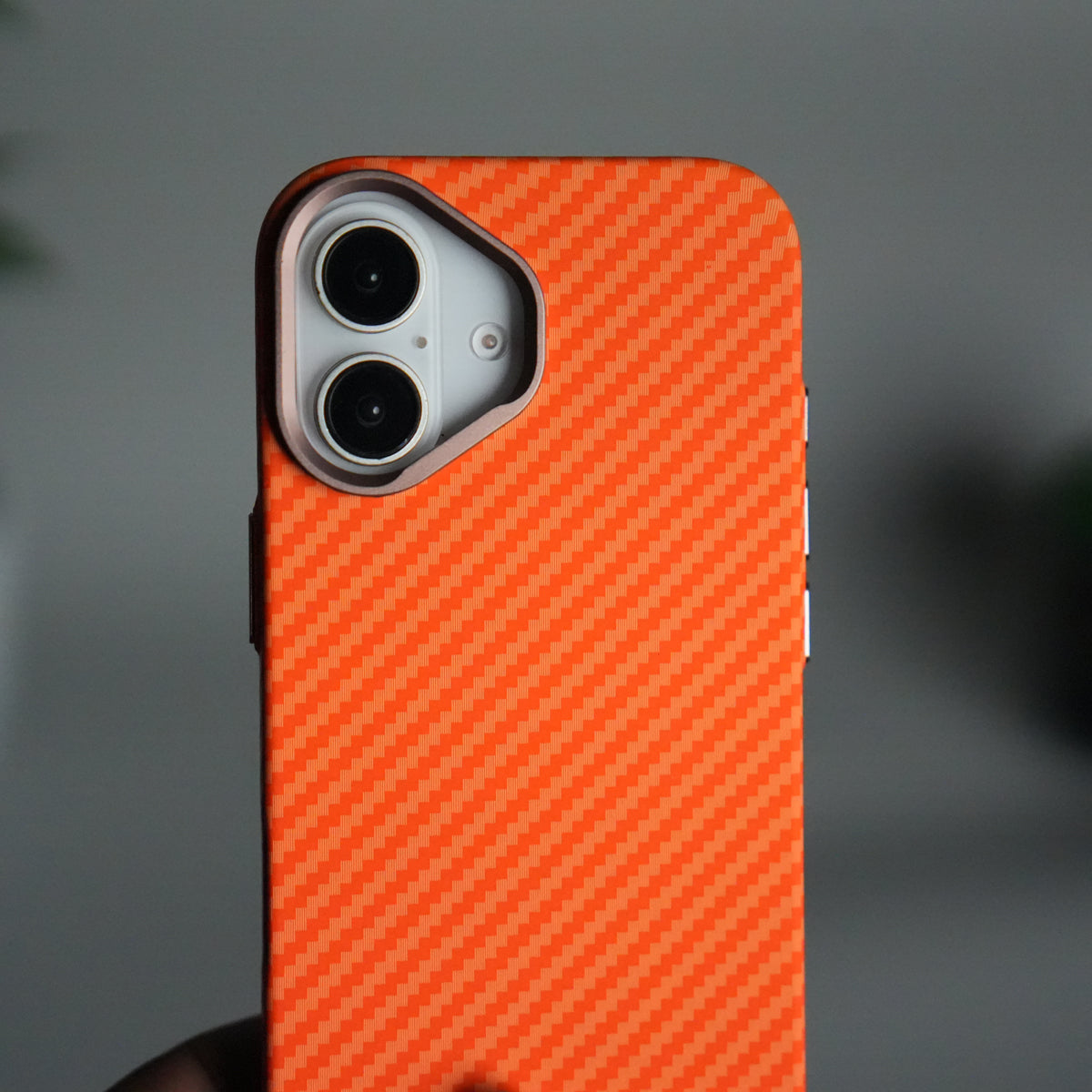 iPhone 17 Carbon Fiber Texture Design Hard Pc MagSafe Case Cover OrangeCarbon