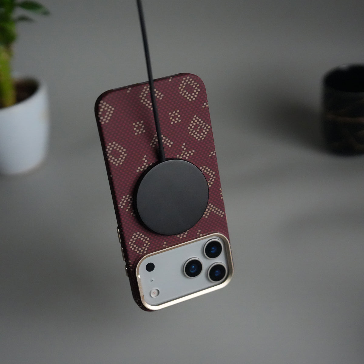 Protect your iPhone 17 Pro with this premium Aramid Fiber case designed for strength, style, and wireless convenience. Crafted from lightweight yet durable aramid fiber, this cover offers a sleek, ultra-thin profile without compromising protection. The built-in Magnetic Charging Ring ensures seamless MagSafe & wireless charging compatibility, making it perfect for modern everyday use.