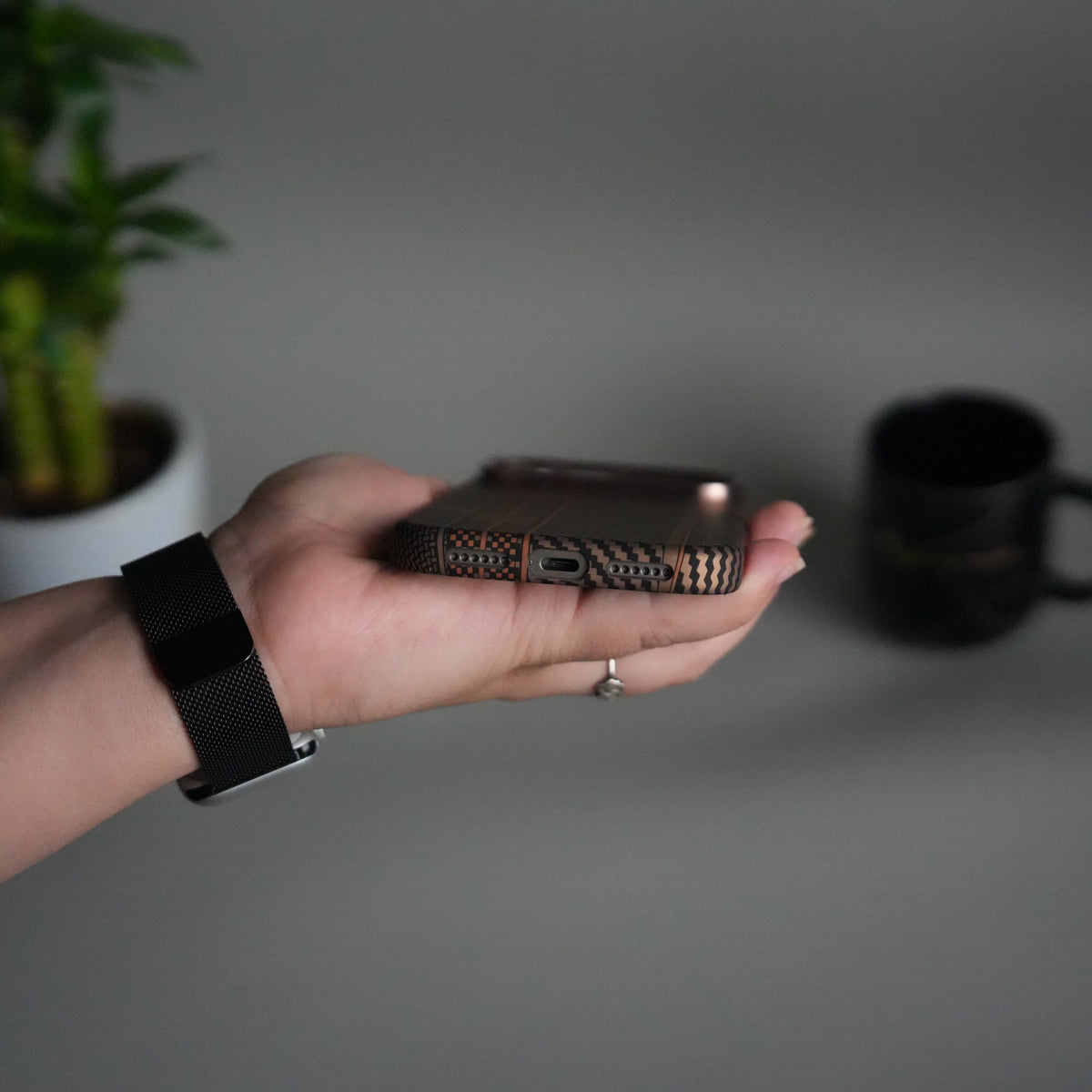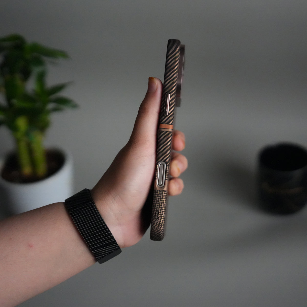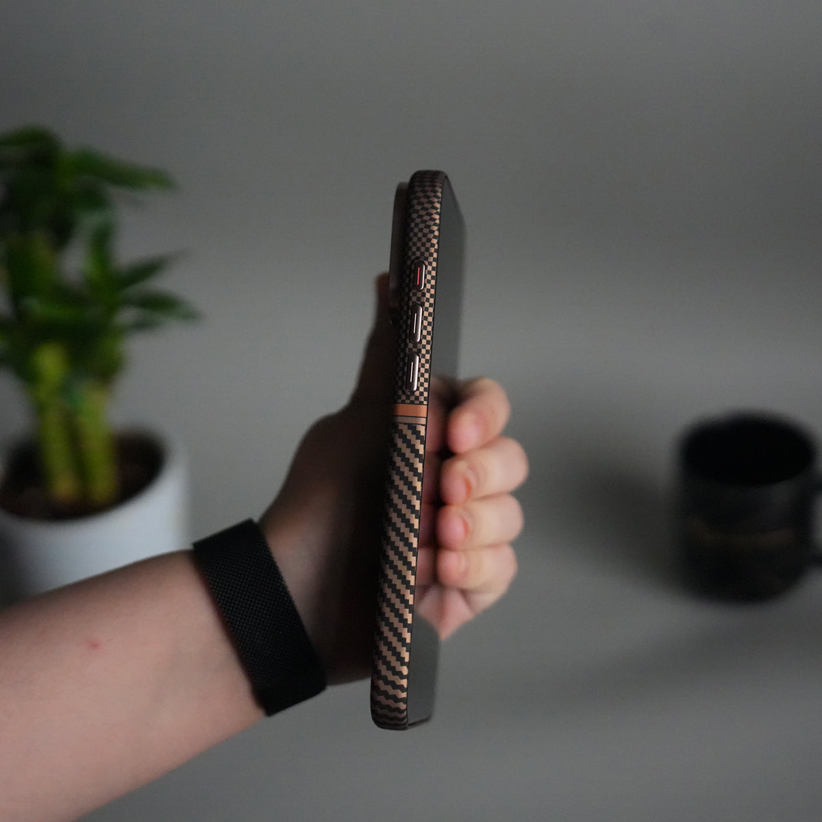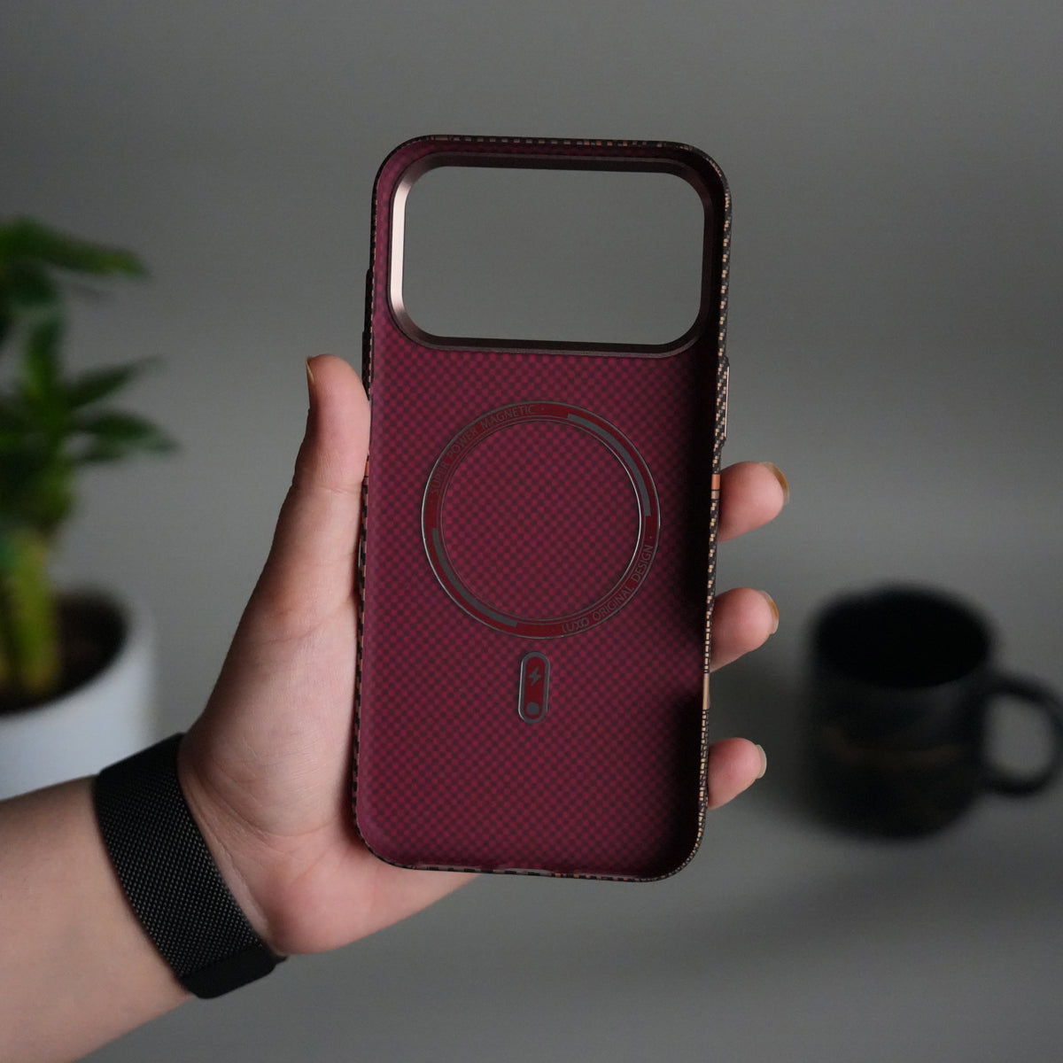 iPhone 17 Pro Carbon Fiber Texture Design Hard Pc MagSafe Case Cover OrangeMix