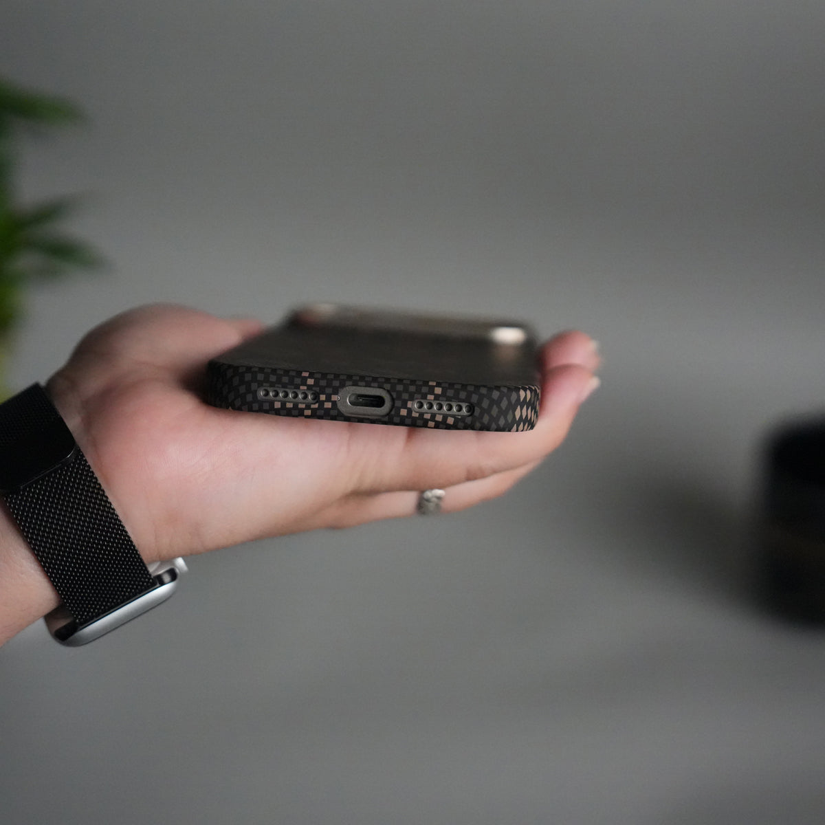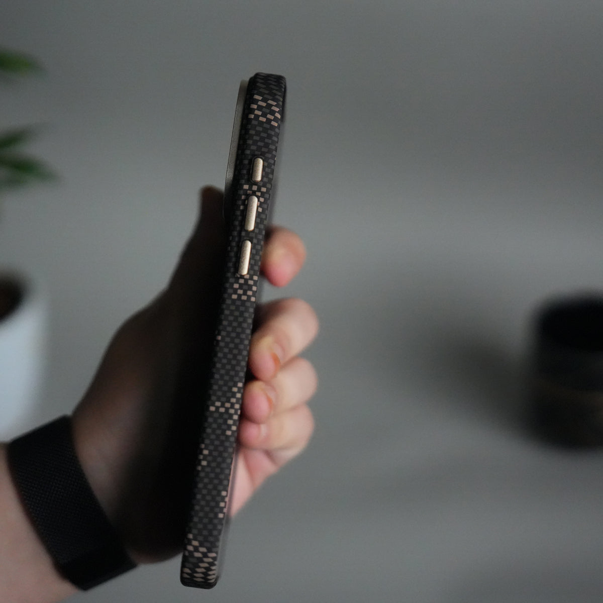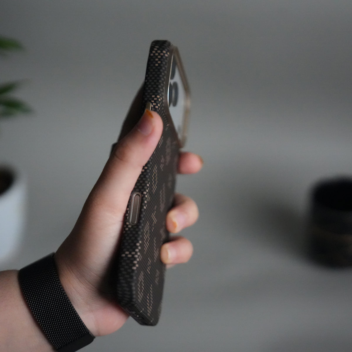 Protect your iPhone 17 Pro Max with this premium Aramid Fiber case designed for strength, style, and wireless convenience. Crafted from lightweight yet durable aramid fiber, this cover offers a sleek, ultra-thin profile without compromising protection. The built-in Magnetic Charging Ring ensures seamless MagSafe & wireless charging compatibility, making it perfect for modern everyday use.