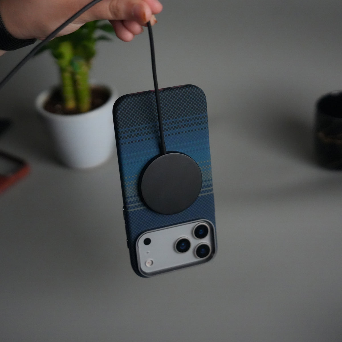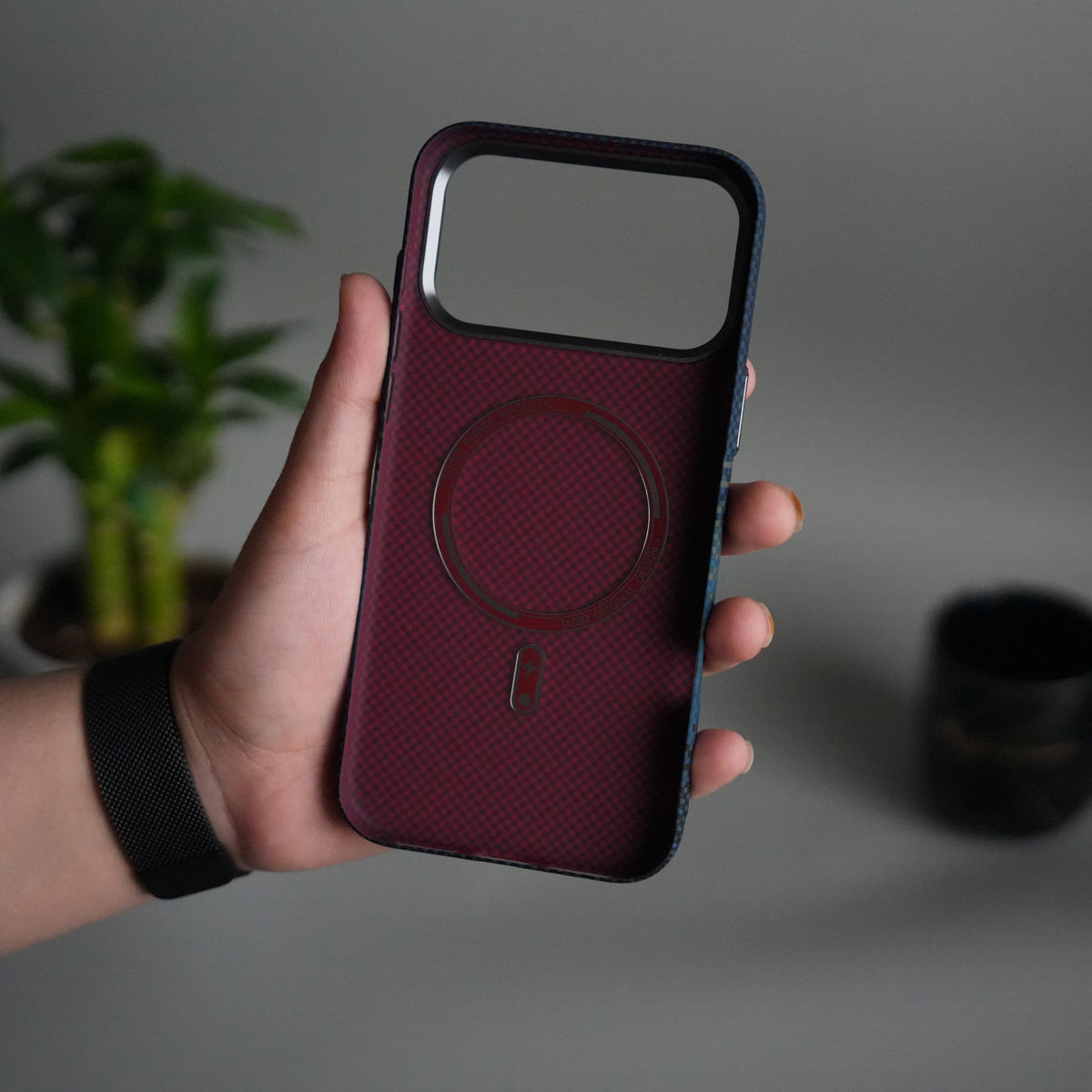 iPhone 17 Pro Max Carbon Fiber Texture Design Hard Pc MagSafe Case Cover BlueGreen