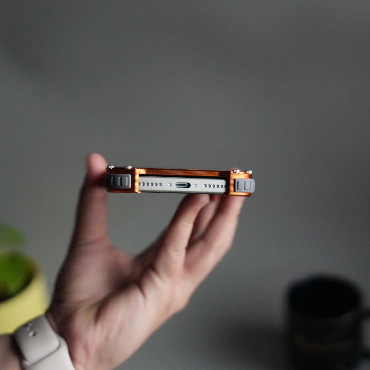 iPhone 17 Series Premium Orange Carbon Design Aluminium Metal Snap On Rotating Stand case