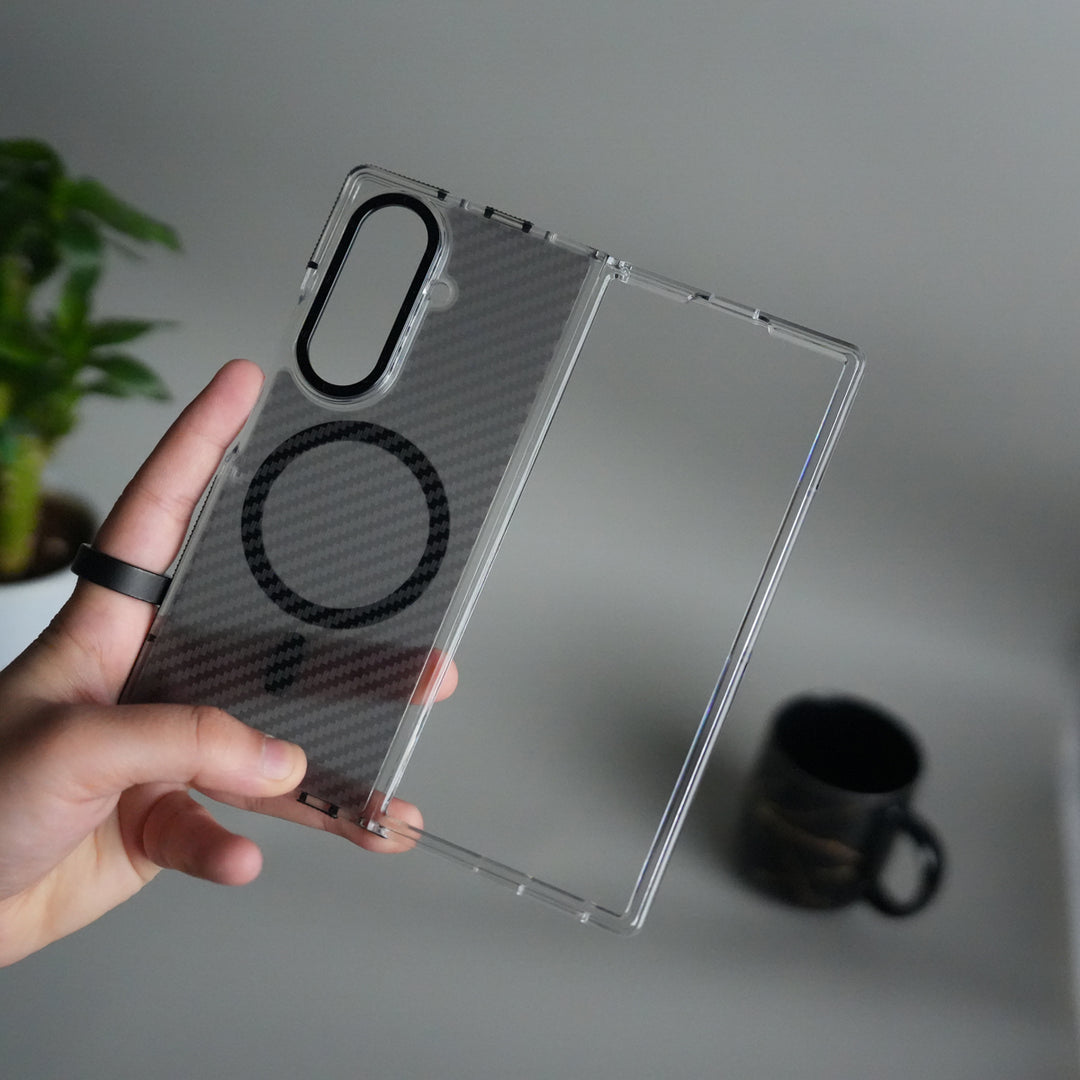 Galaxy Z Fold 7 Carbon Texture Transparent Metal Camera Ring MagSafe Cover