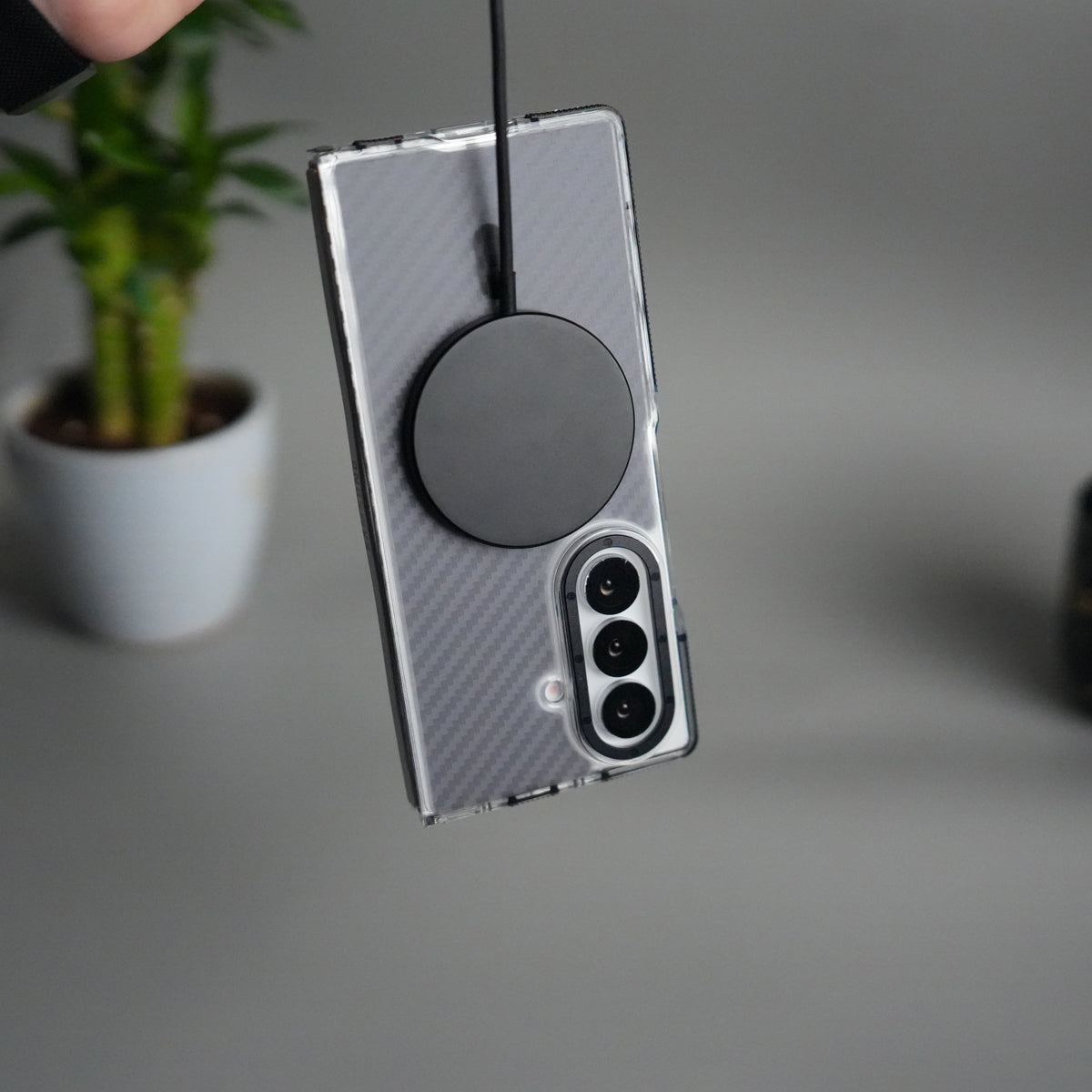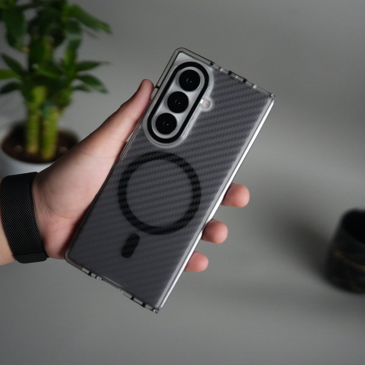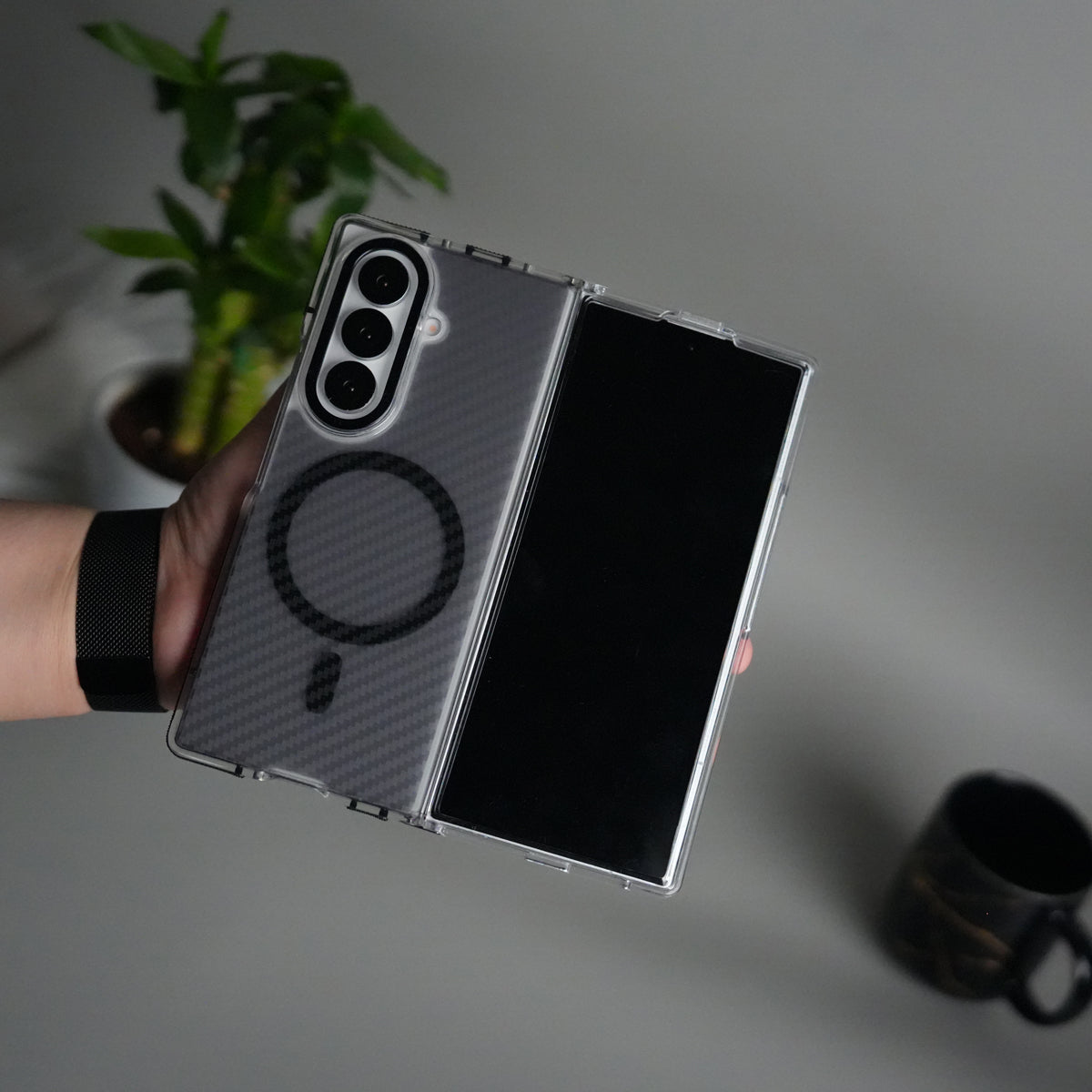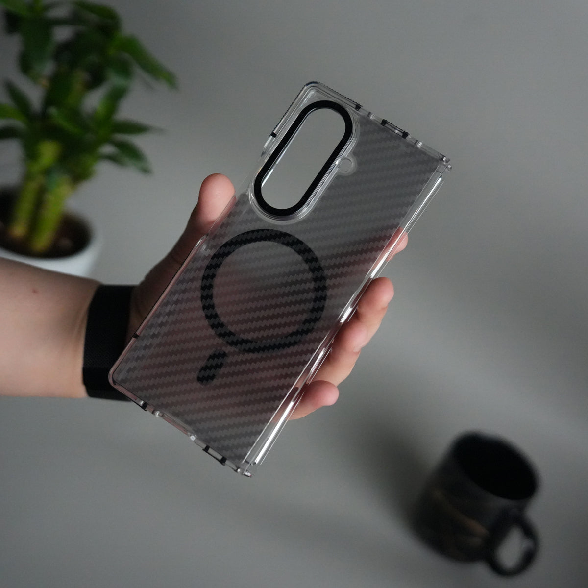 Galaxy Z Fold 7 Carbon Texture Transparent Metal Camera Ring MagSafe Cover