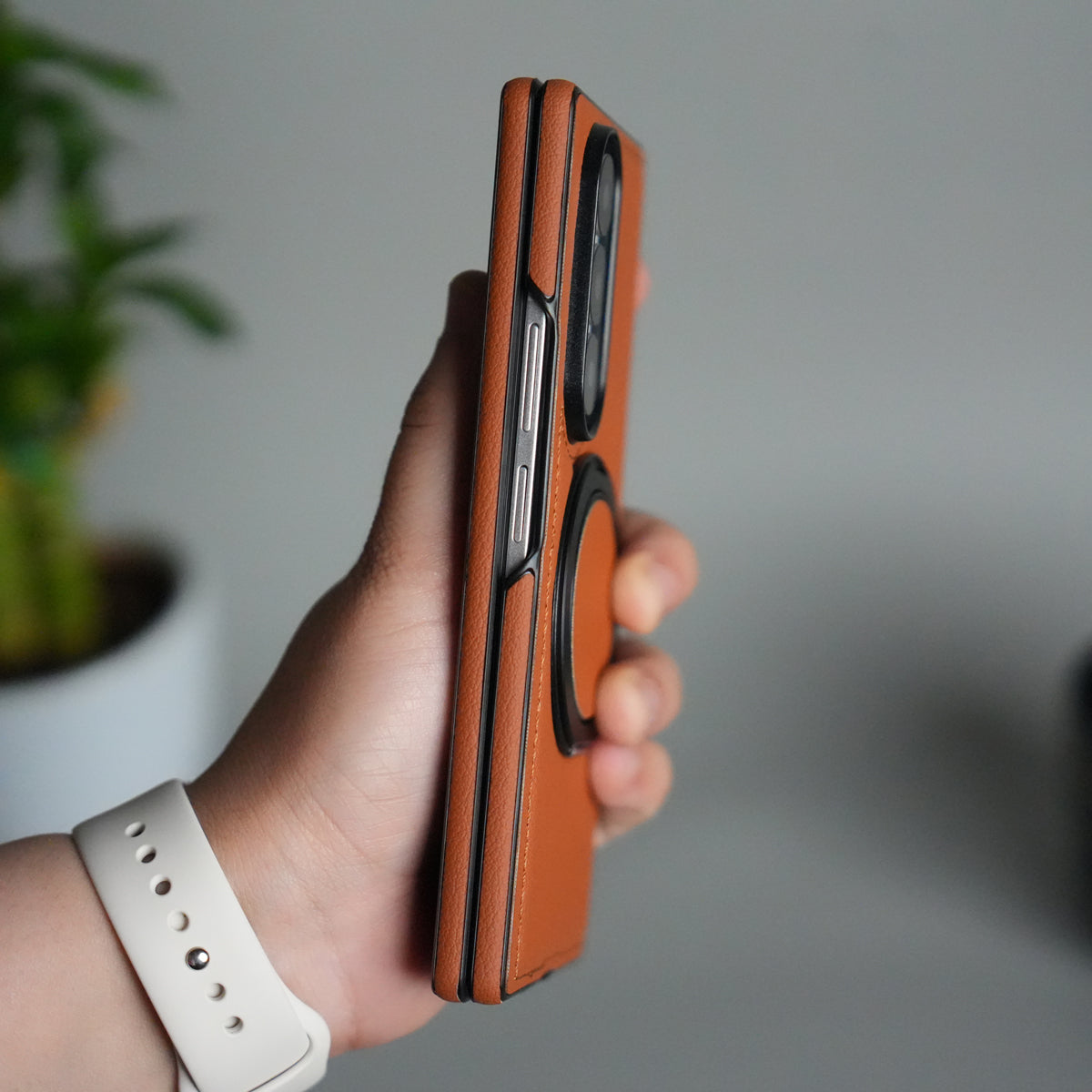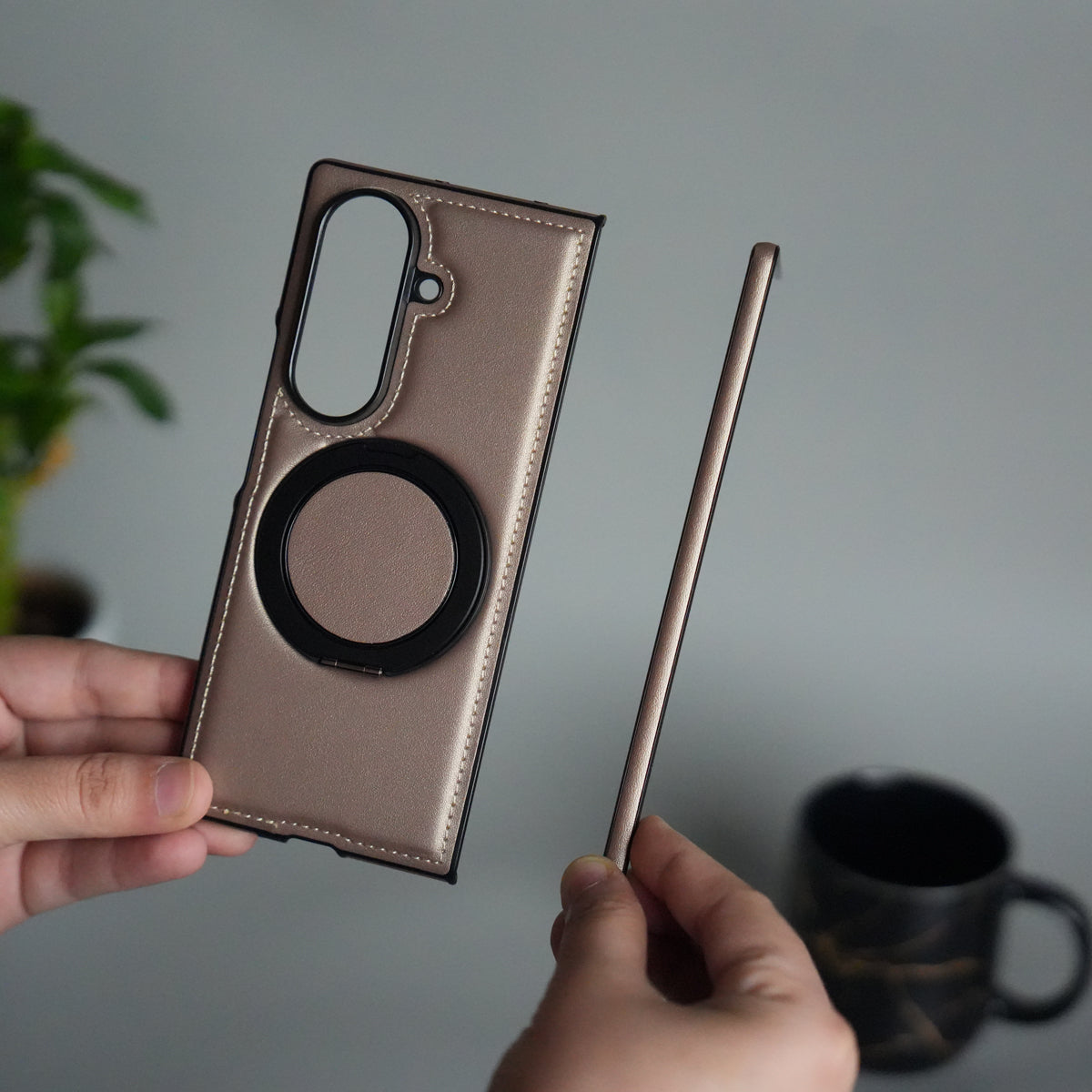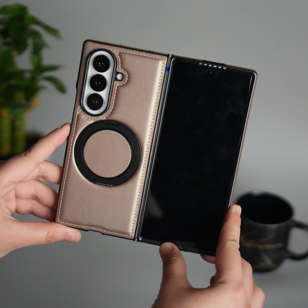 Galaxy Z Fold 7 Premium Leather MagSafe Case | Strong Magnetic Ring | Shockproof Back Cover with Luxe PU Leather Finish