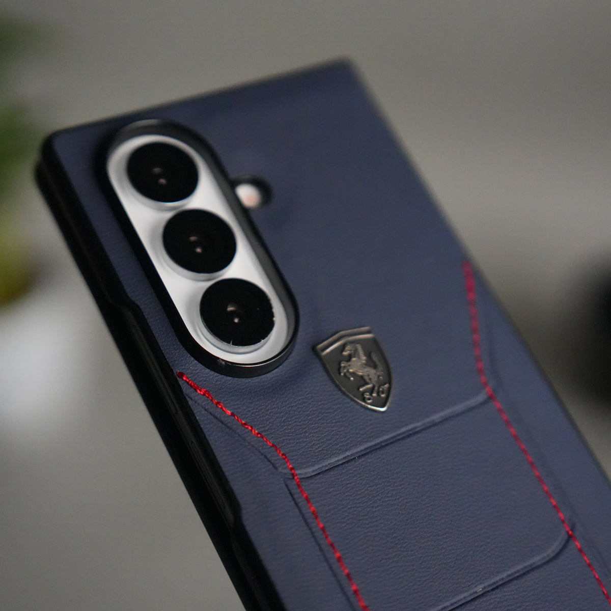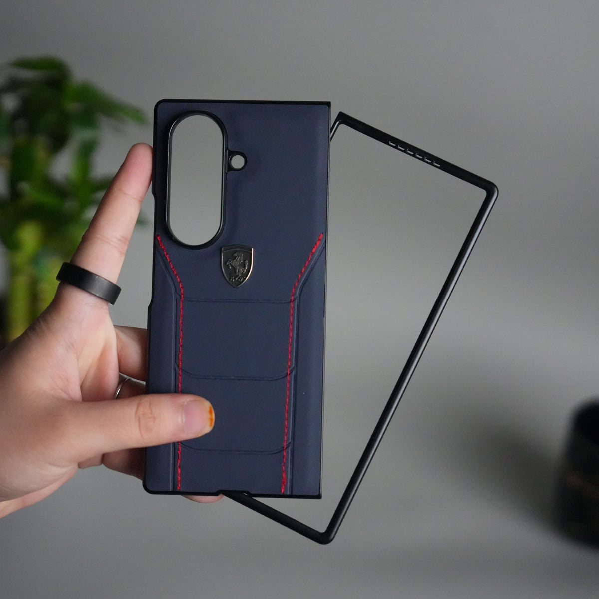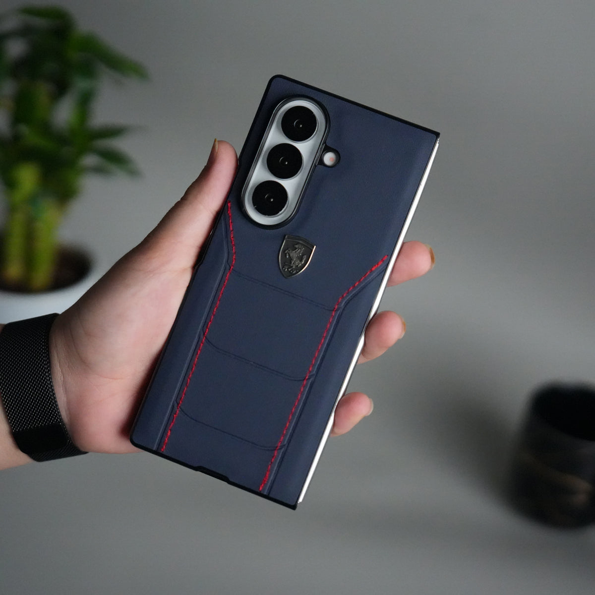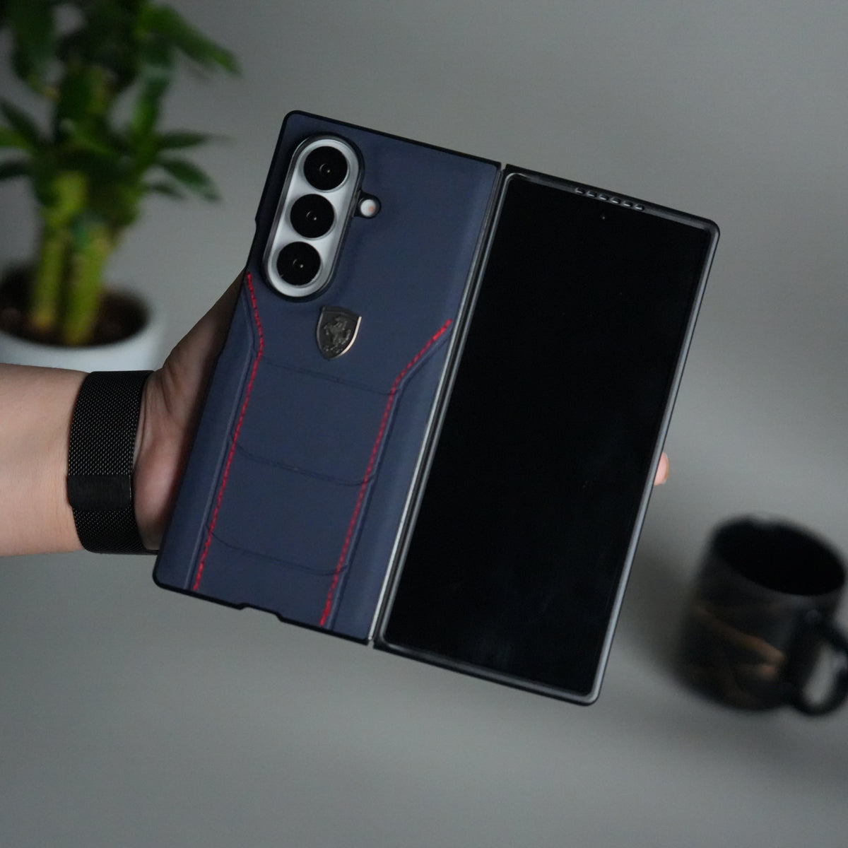 Samsung Galaxy Z Fold 7 FR Stitched PU Leather Case Cover Blue