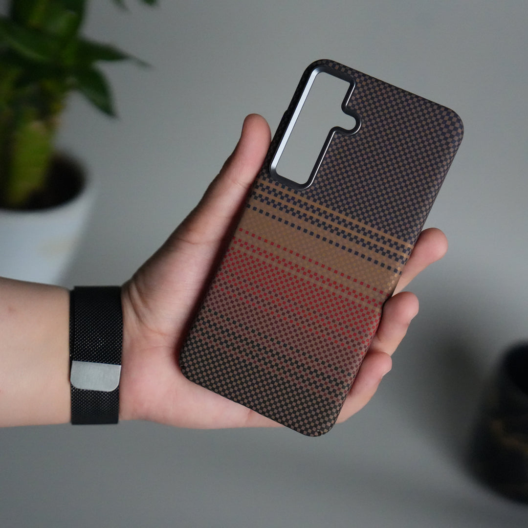 Galaxy S24 Carbon Fiber Texture Aramid Design Hard Pc MagSafe Case Cover | OrangeRed