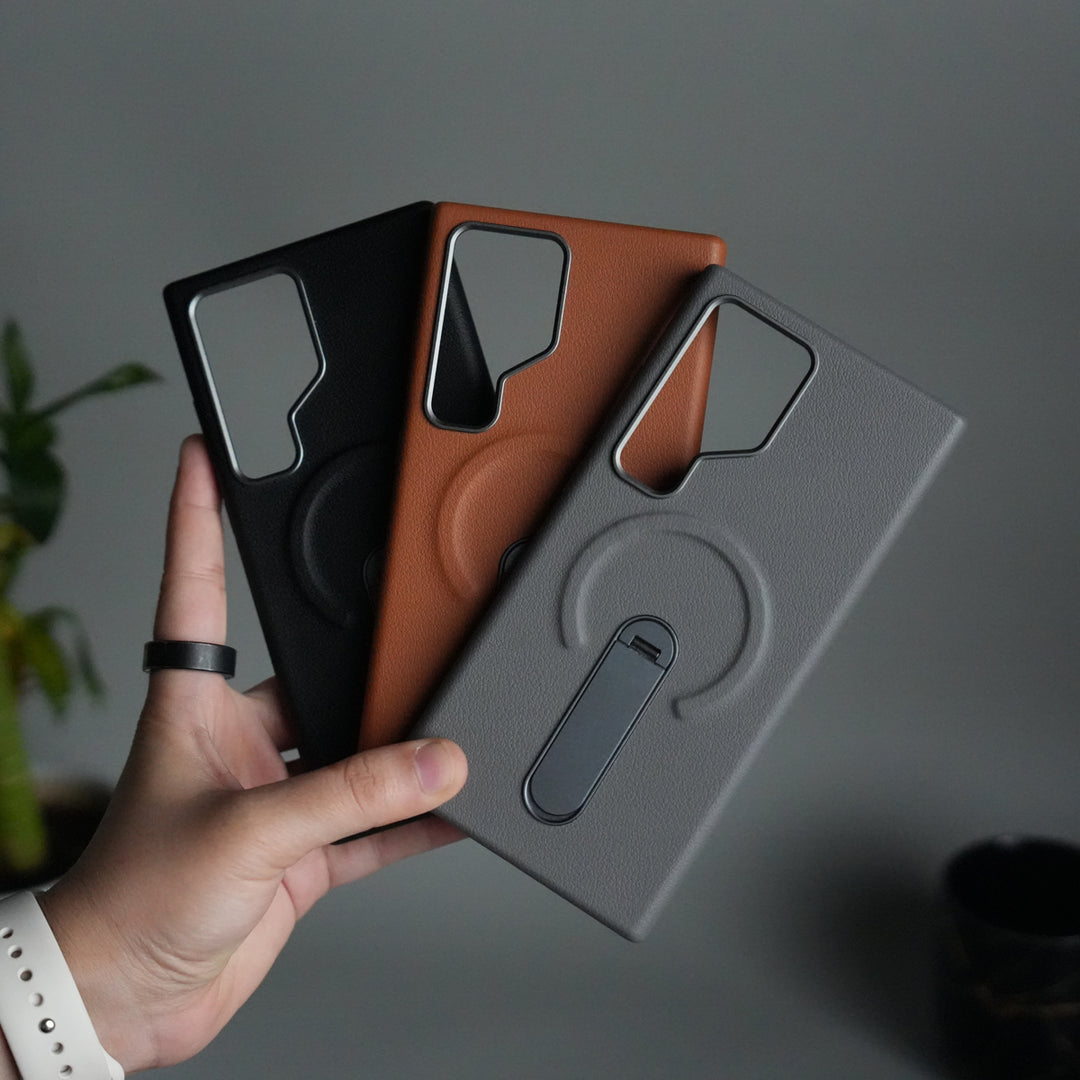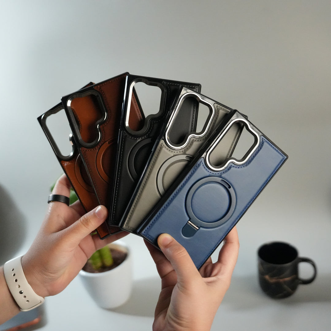 Samsung Galaxy Ultra Series Premium PU Leather Metal MagSafe Ring Case