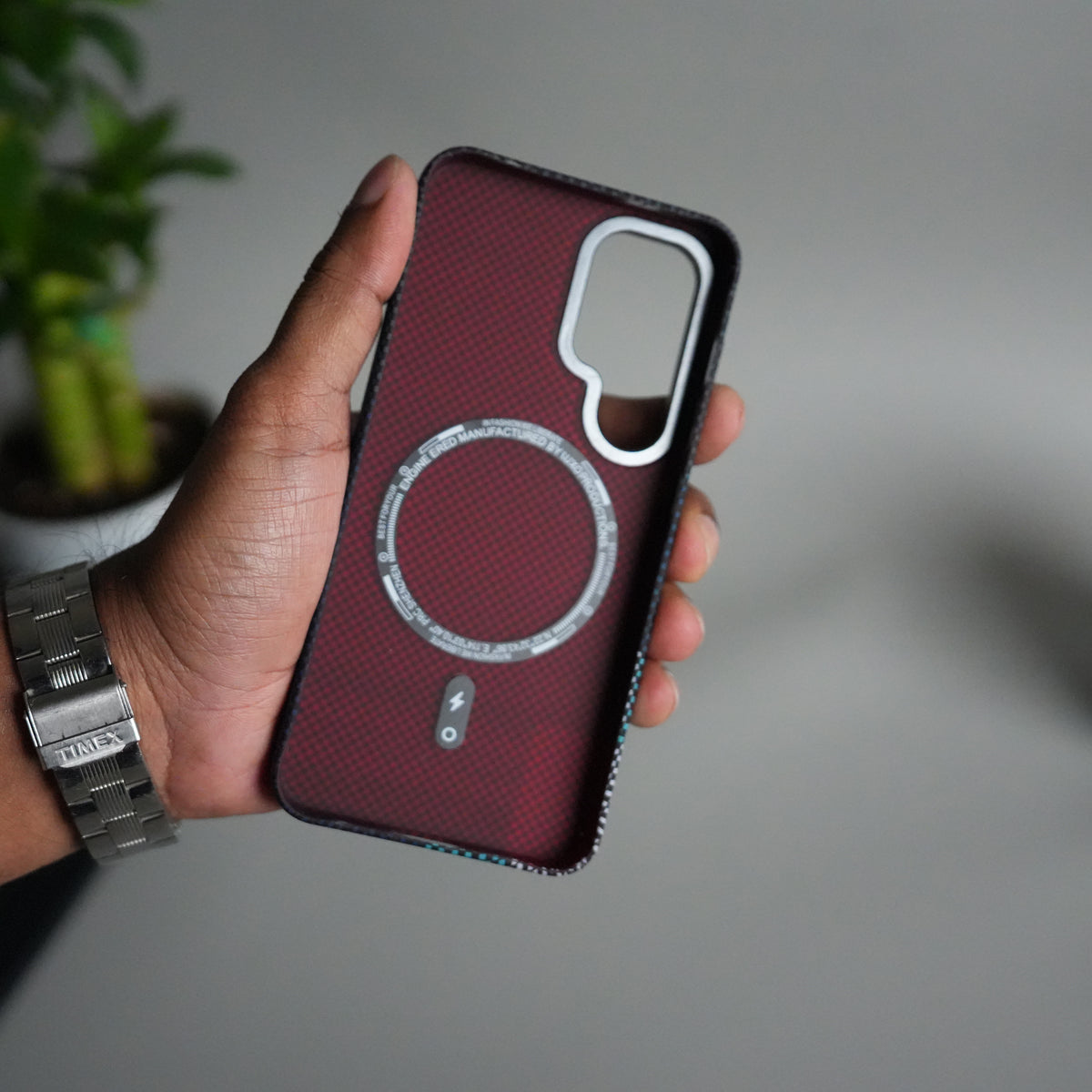 Galaxy S24 Carbon Fiber Texture Design Hard Pc MagSafe Case Cover CornerGreen