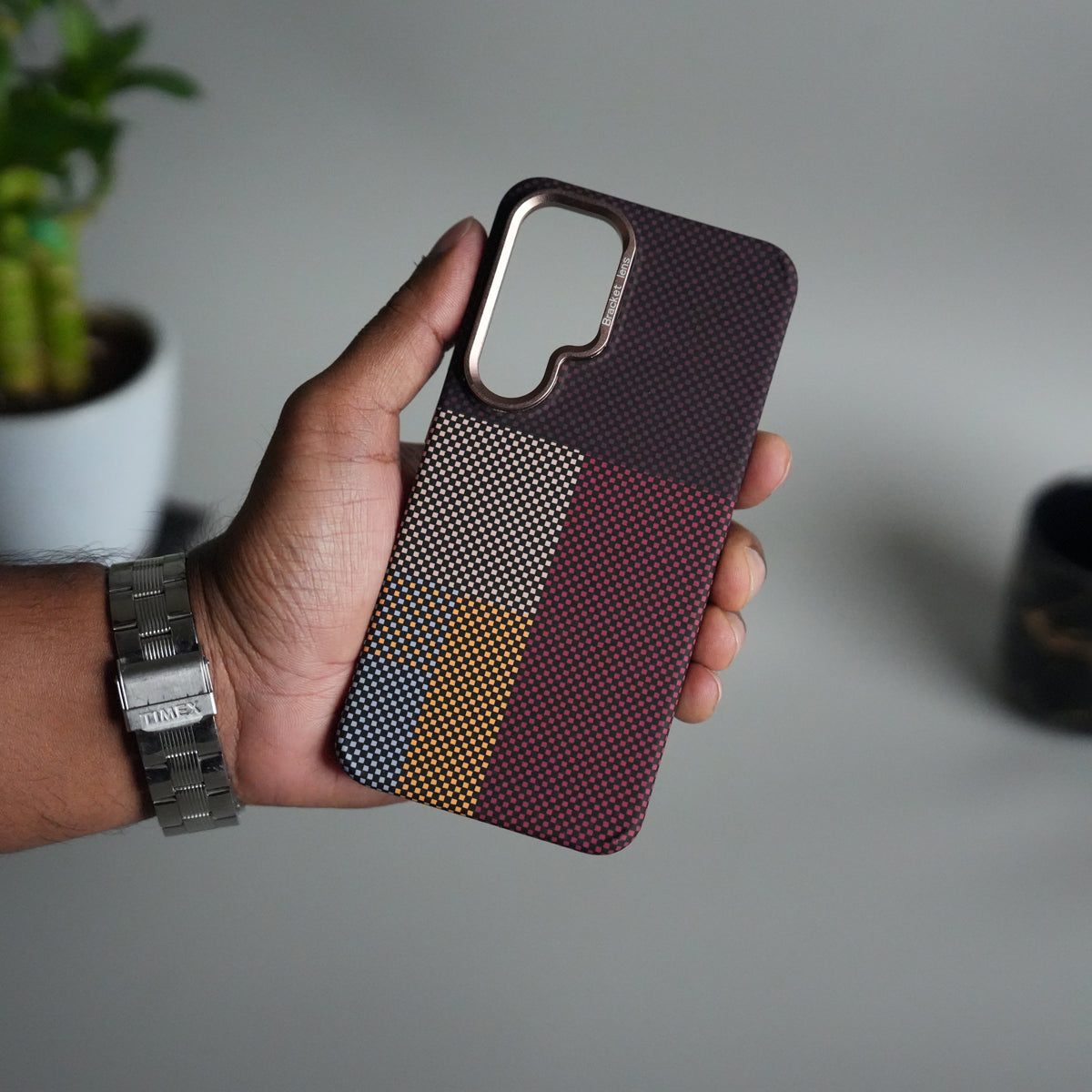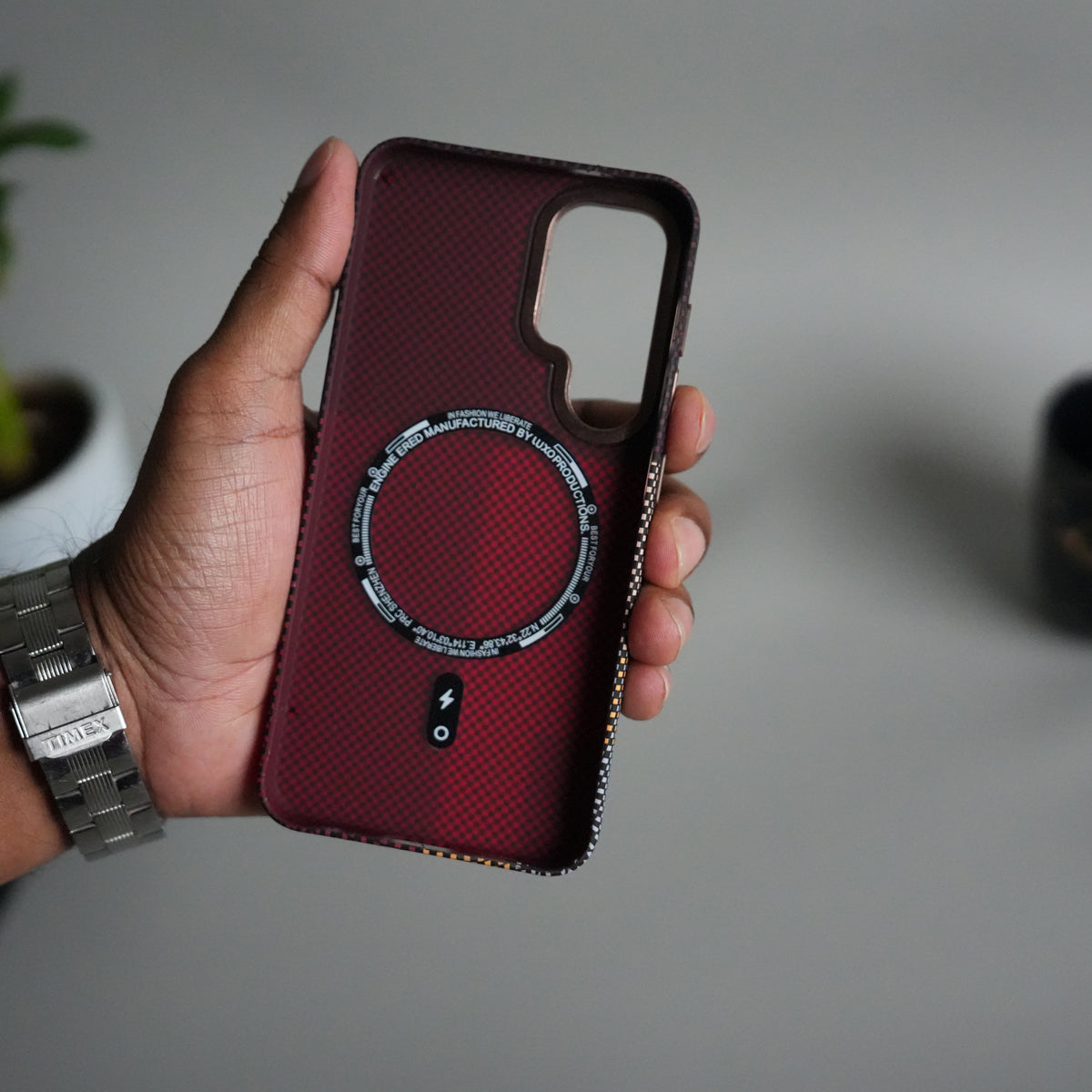 Galaxy S24 Carbon Fiber Texture Design Hard Pc MagSafe Case Cover CornerYellow