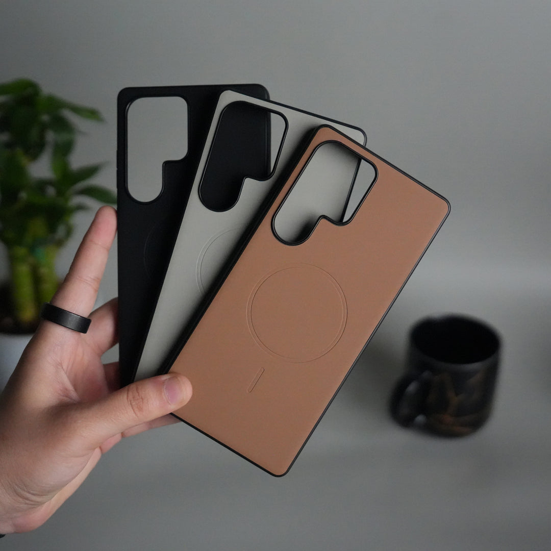 Samsung Galaxy Ultra Series Premium PU Leather Metal MagSafe Ring Case