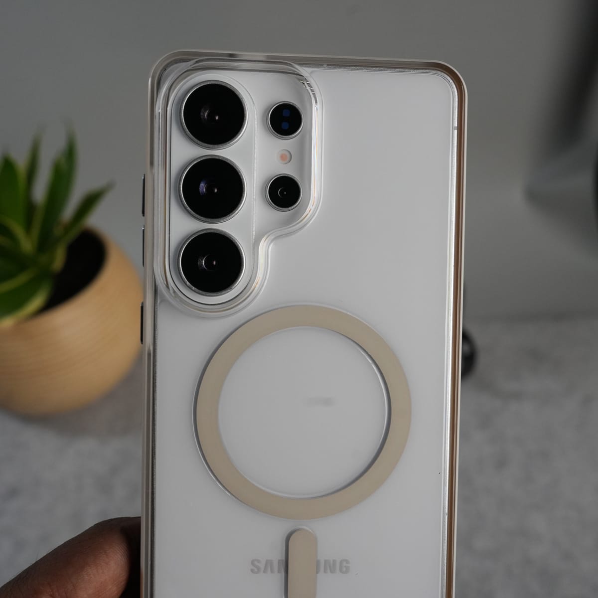 Enhance the look of your Samsung Galaxy S26 Ultra with this sleek and minimal clear MagSafe case, designed to deliver everyday protection while preserving the original design of your device. Built with a crystal-clear finish and integrated magnetic ring, this case ensures seamless functionality with modern accessories.