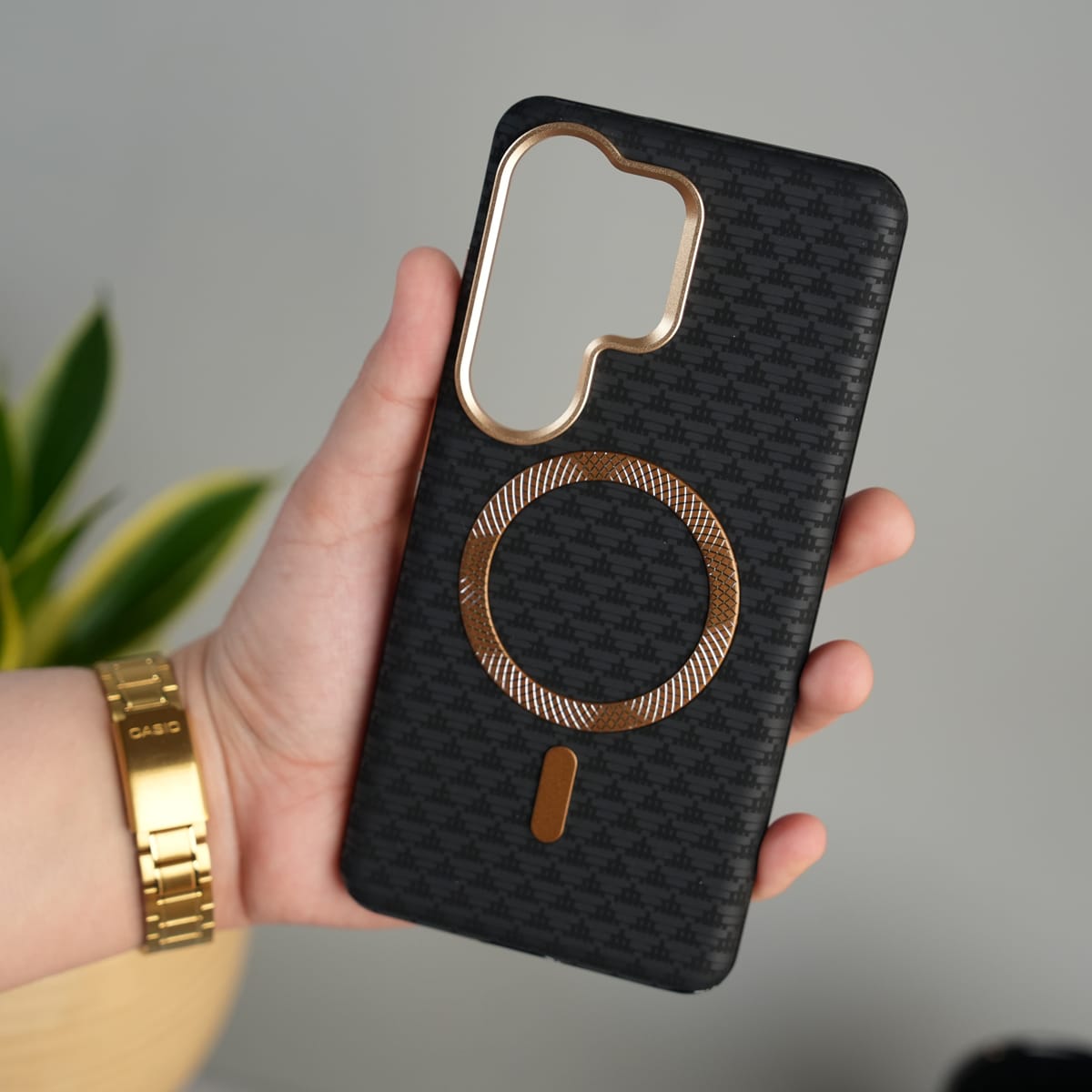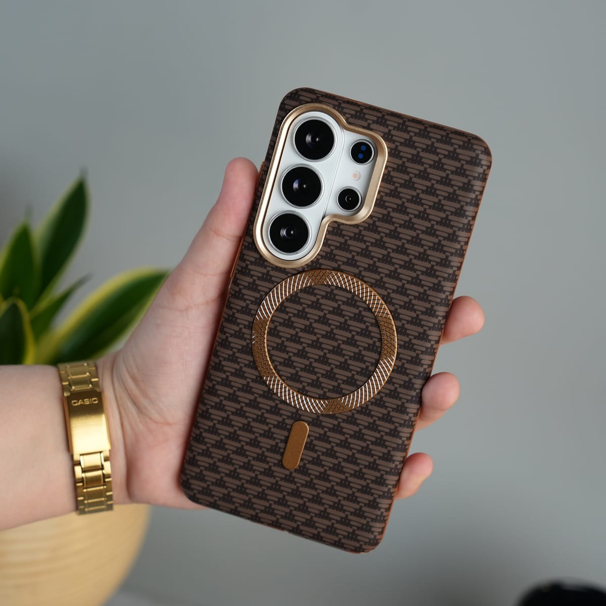 Upgrade your Samsung Galaxy S26 Ultra with a case that blends luxury design, premium texture. This case stands out with its elegant woven-style pattern and metallic accents, delivering both fashion and function.
