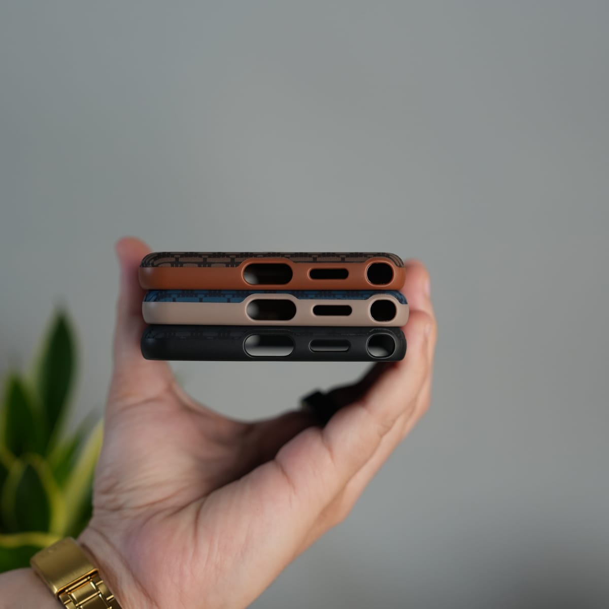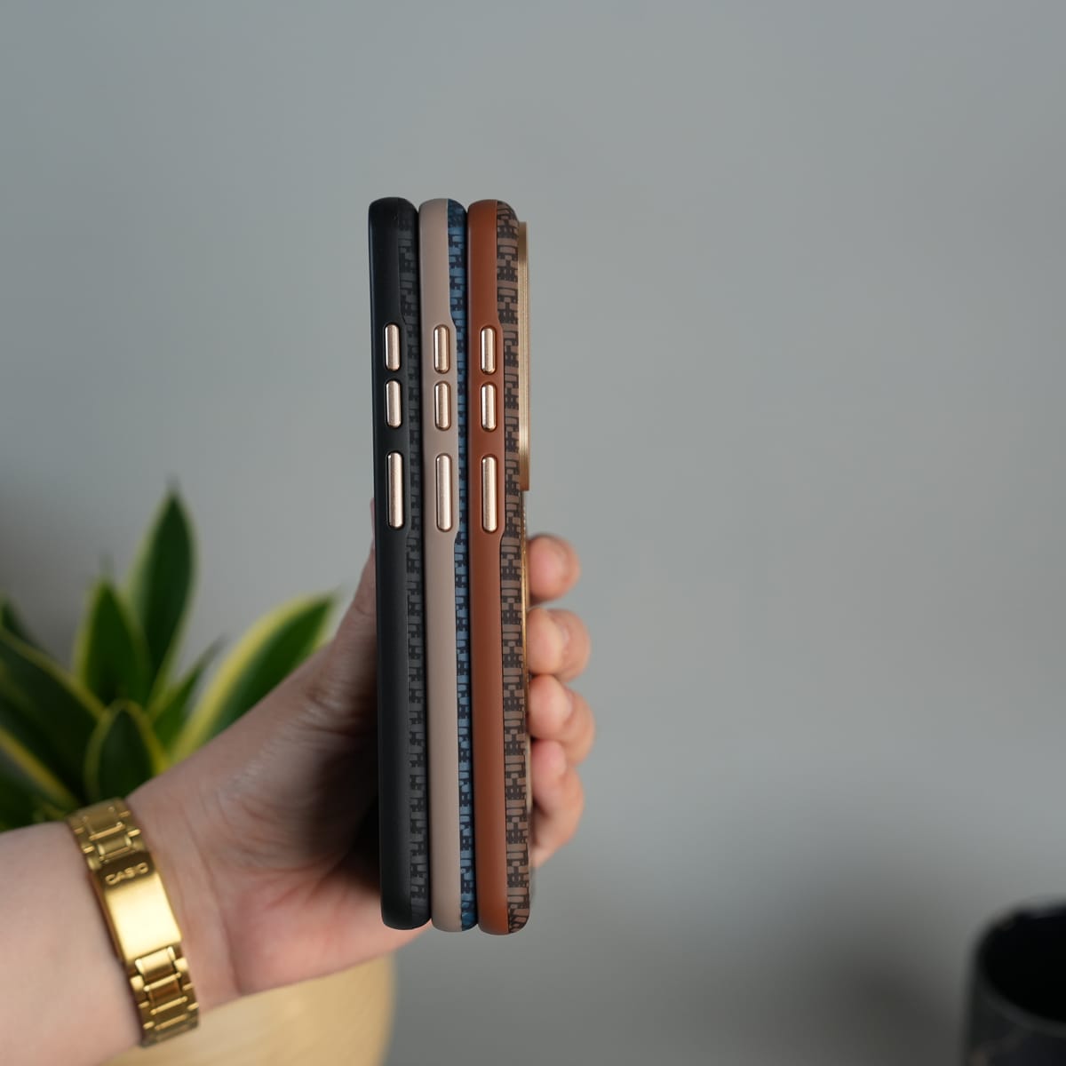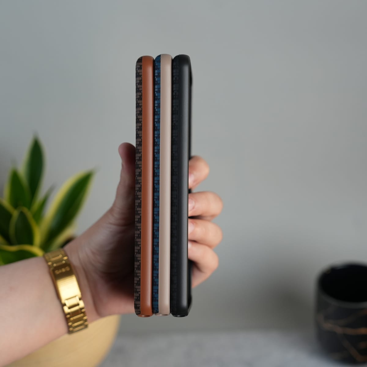Stylish woven/leather-look pattern enhances grip and gives a classy, high-end feel.