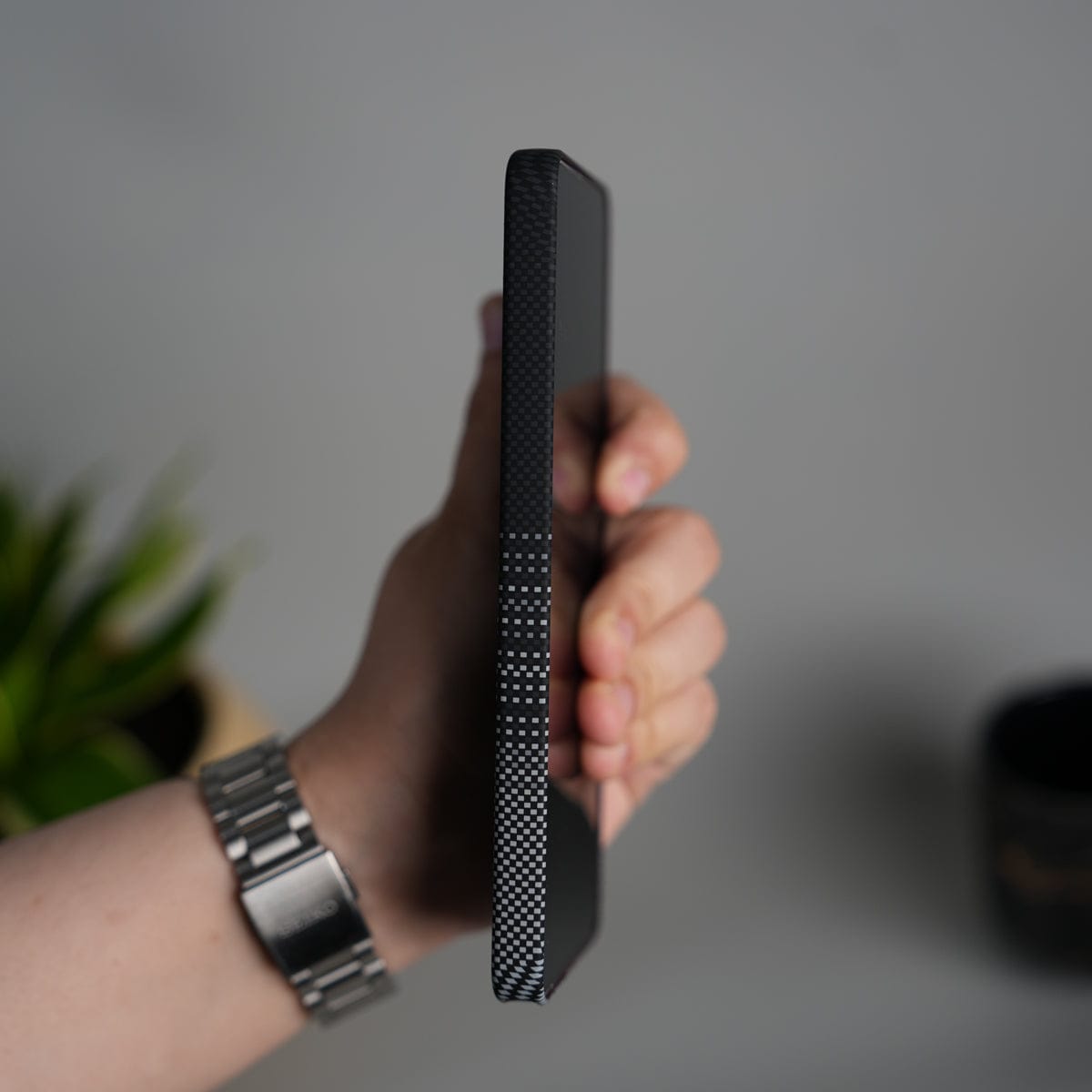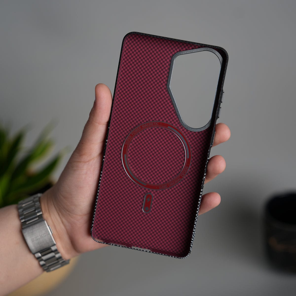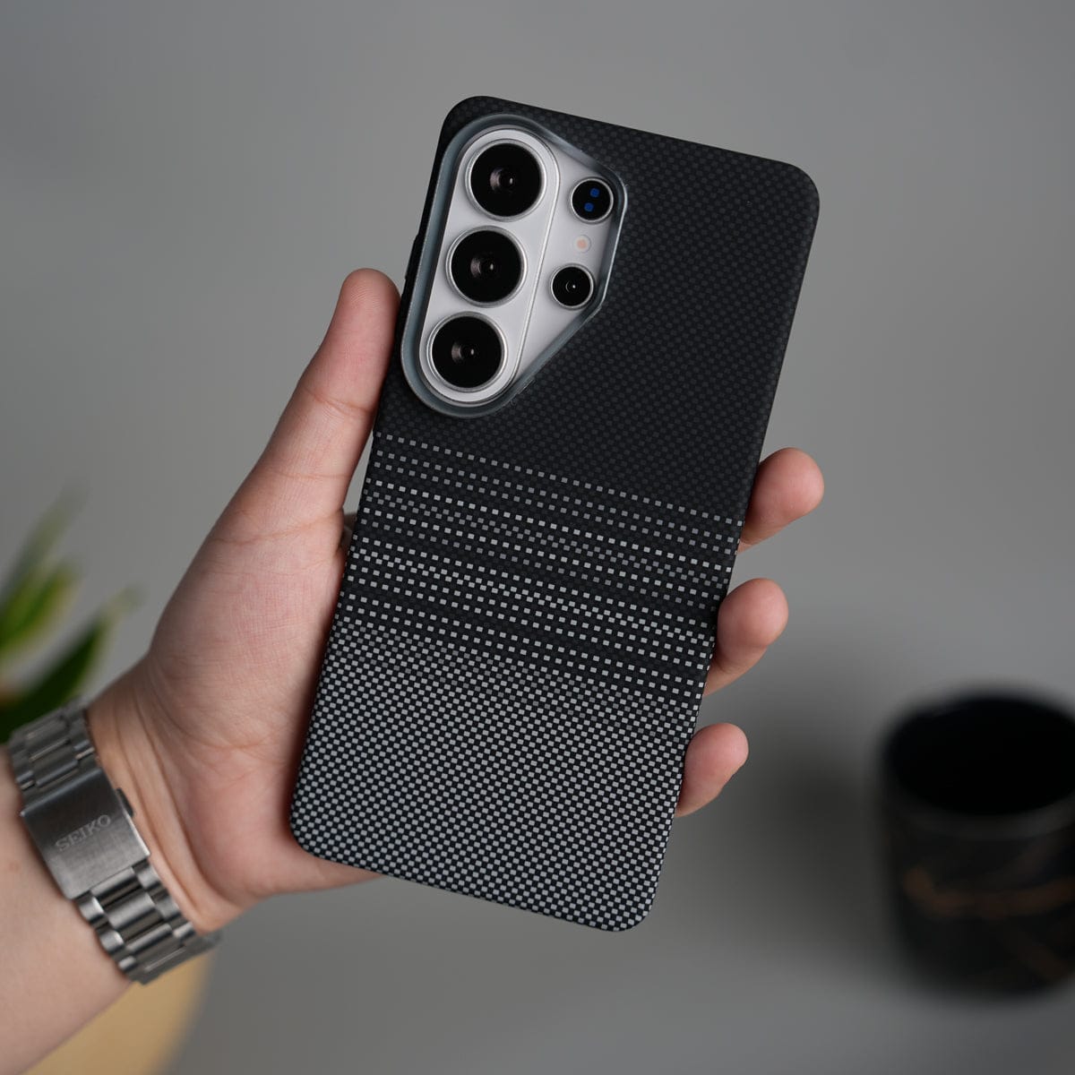 Galaxy S25 Ultra Carbon Fiber Texture Design Hard Pc MagSafe Case Cover BlackGrayLine Design
