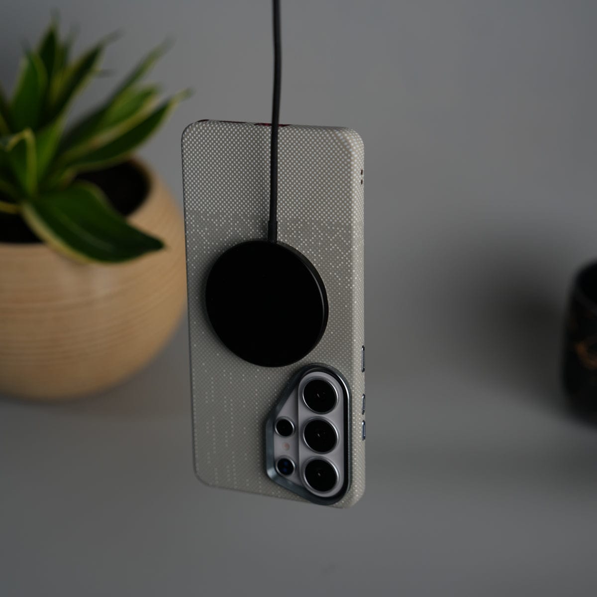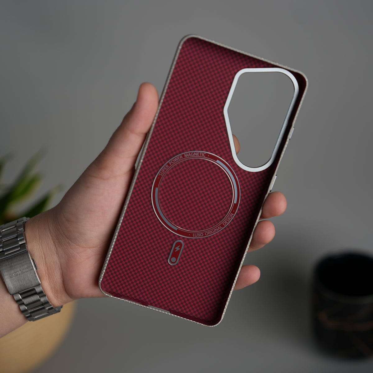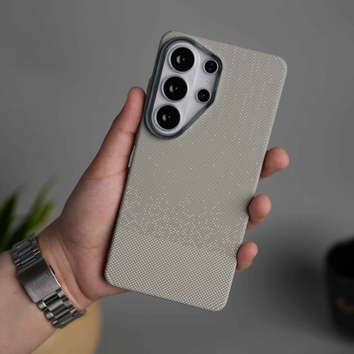 Galaxy S25 Ultra Carbon Fiber Texture Design Hard Pc MagSafe Case Cover GrayDots Design