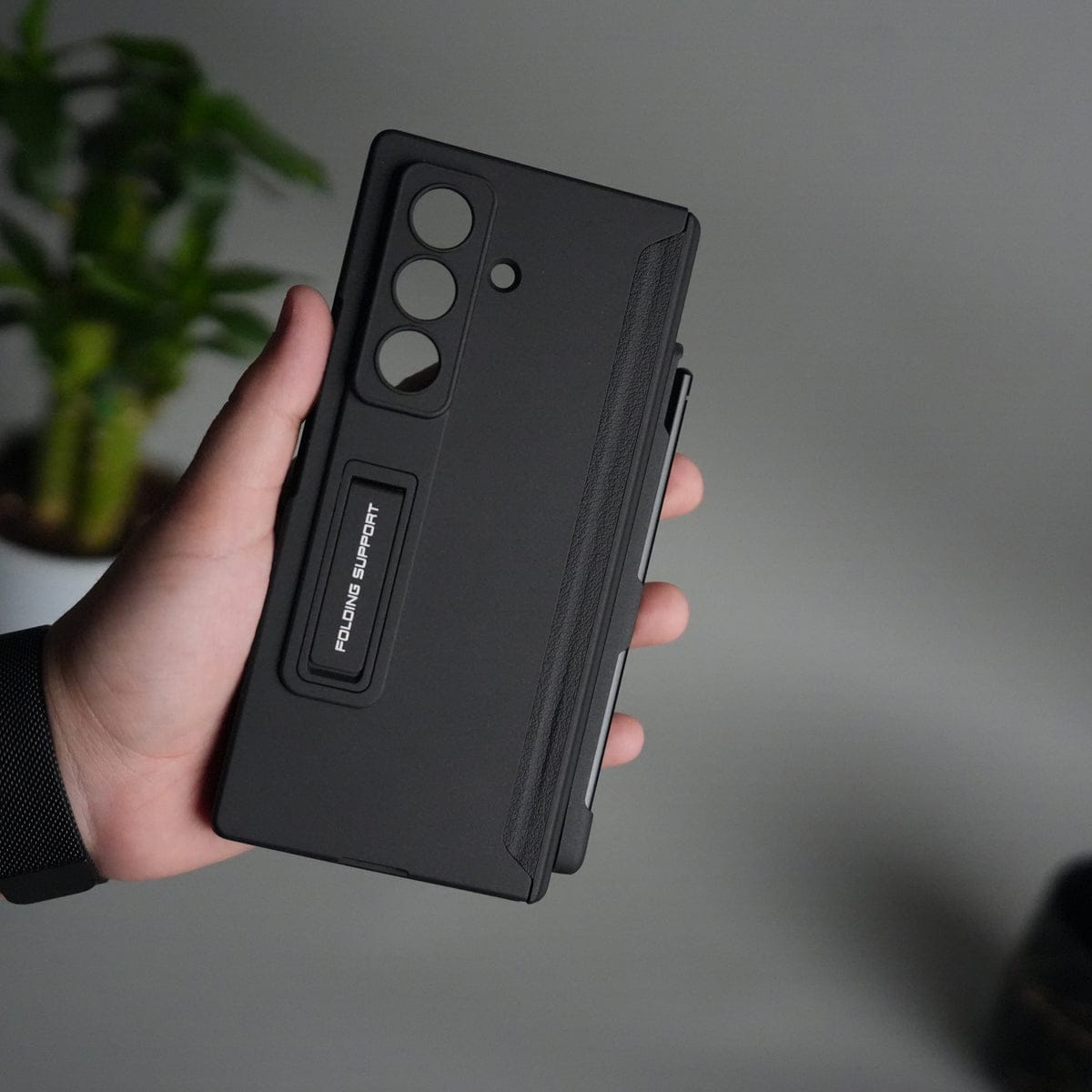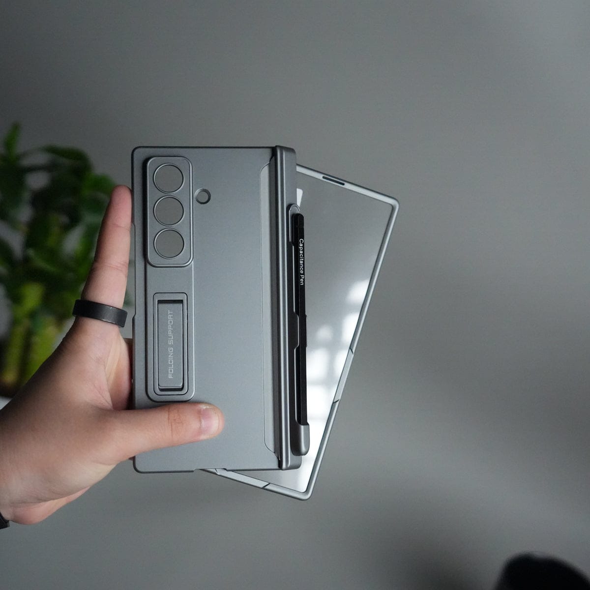 Protect your Samsung Galaxy Z Fold 7 with this premium multi-functional case. Designed with a dedicated S Pen slot, a foldable kickstand, and full front + back cover protection, it gives your Fold 7 the durability it needs without losing elegance. The slim metallic finish keeps it looking stylish while providing shockproof protection against drops, scratches, and daily wear.