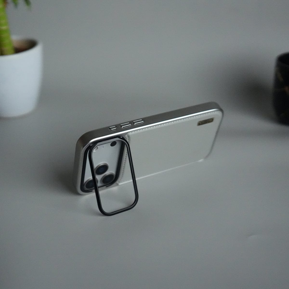 iPhone 17 Pro Premium Leather Back Case with Metal Kickstand And camera Bump Cover
