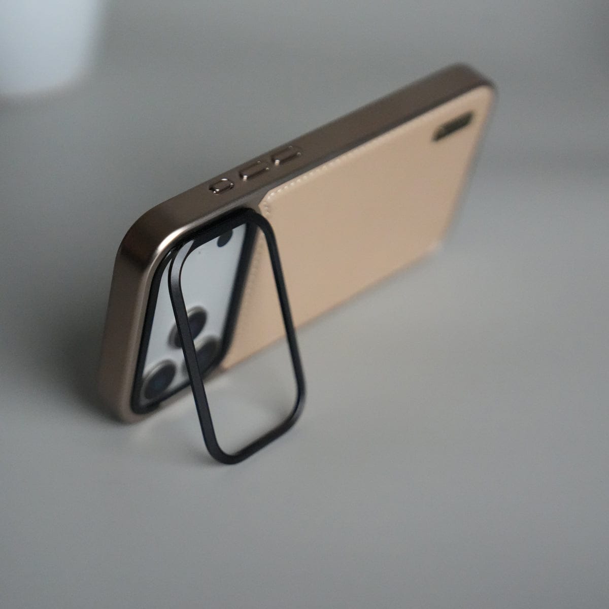 FRATO iPhone 17 Series Beige iPhone 17 Pro Max Premium Leather Back Case with Metal Kickstand And camera Bump Cover